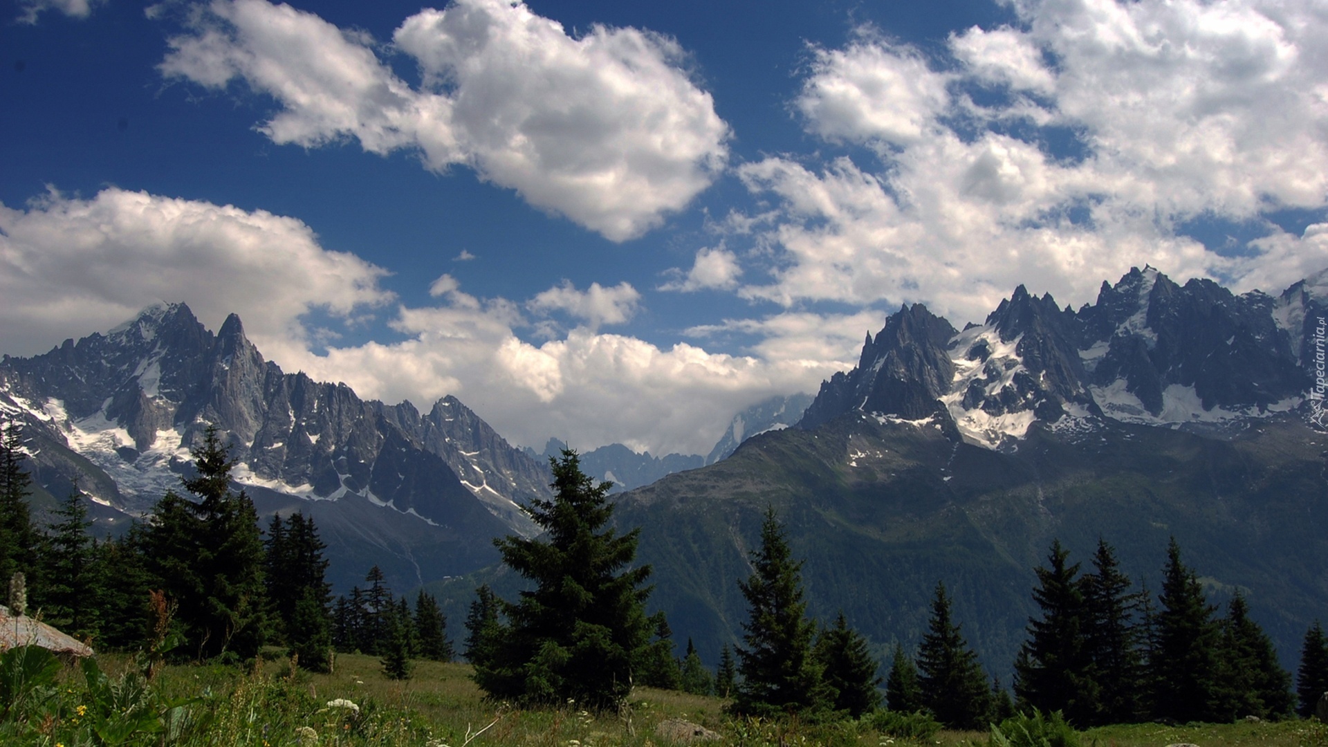 Edytor tapety: Góry, Drzewa, Chmury