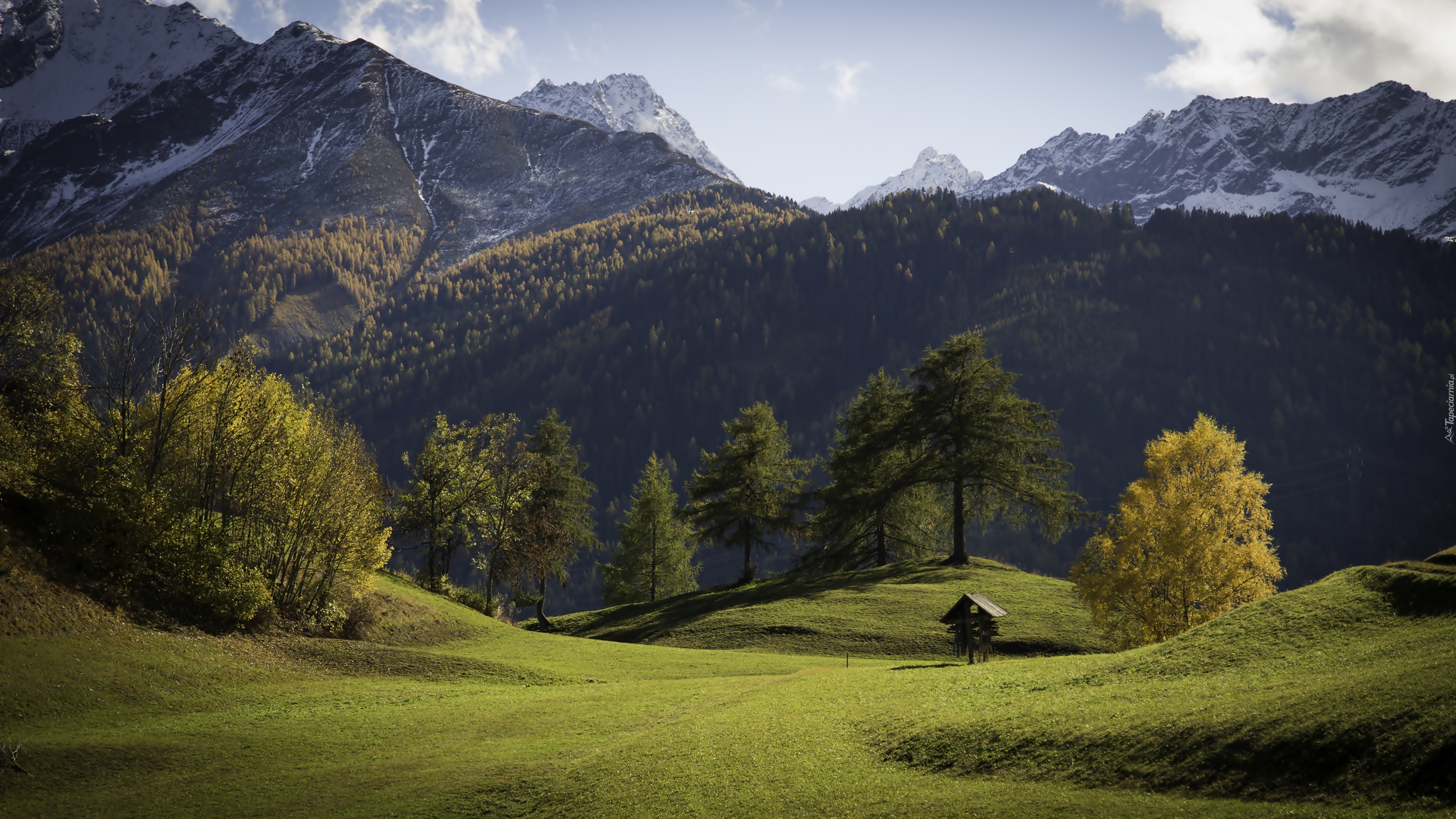 Edytor tapety: Góry, Łąka, Drzewa, Jesień