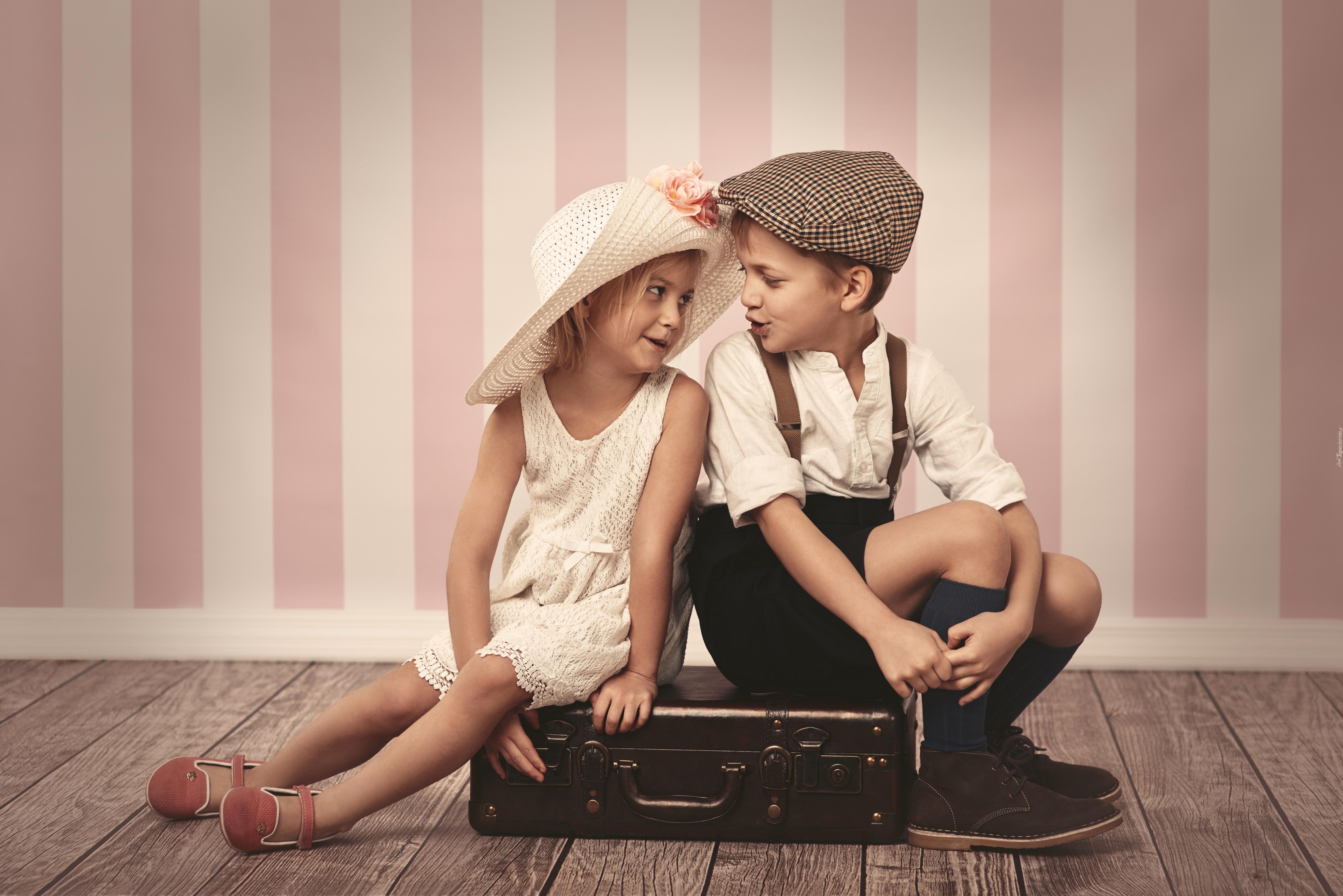 Edytor tapety: Dzieci, Dziewczynka, Kapelusz, Chłopiec, Walizka