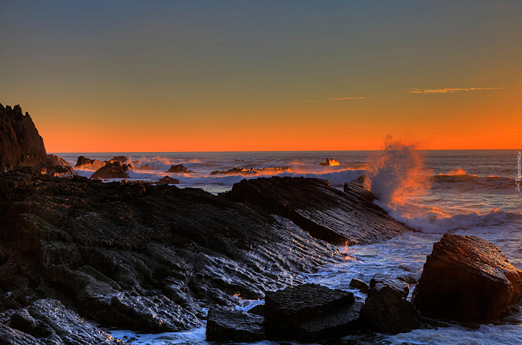 Edytor tapety: Morze, Skały, Zachód, Słońca