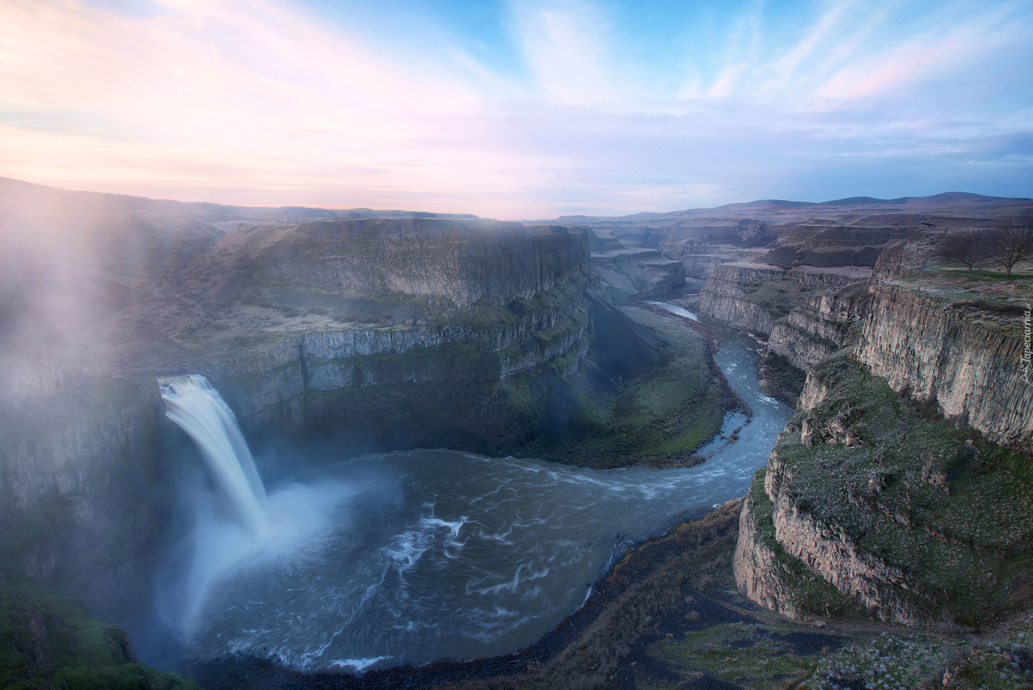 Edytor tapety: Kanion, Rzeka, Mgła, Wodospad
