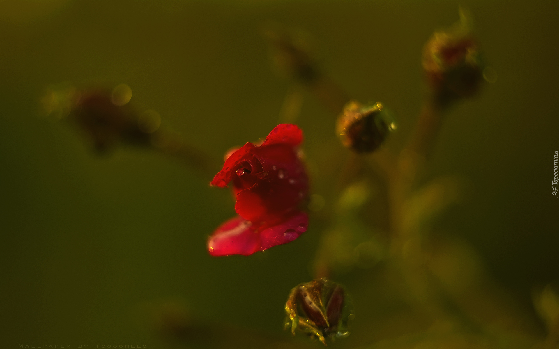 Edytor tapety: Dzika róża, czerwona, pąki, krople wody.