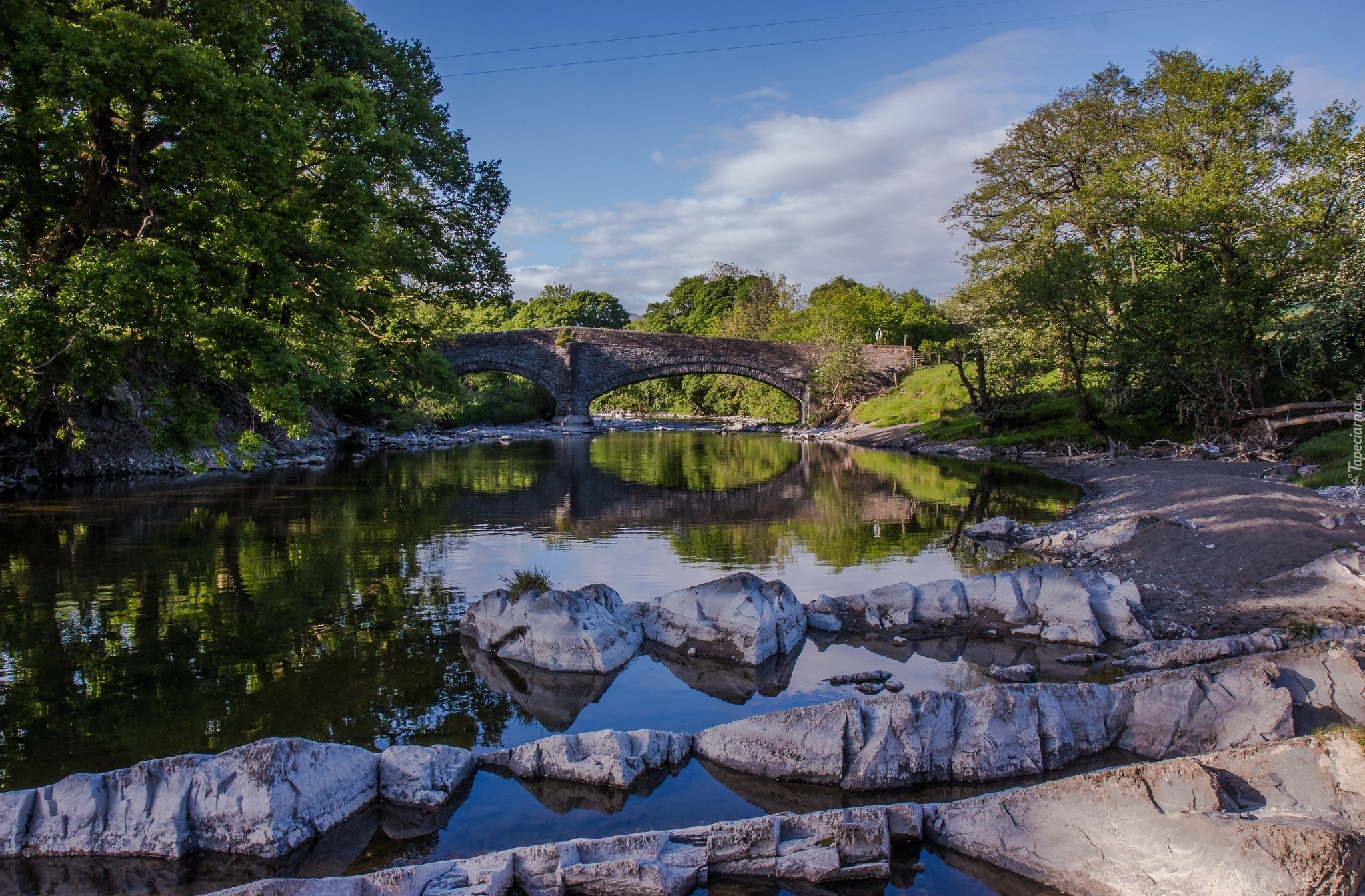 Edytor tapety: Rzeka, Kamienie, Drzewa, Kamienny, Most
