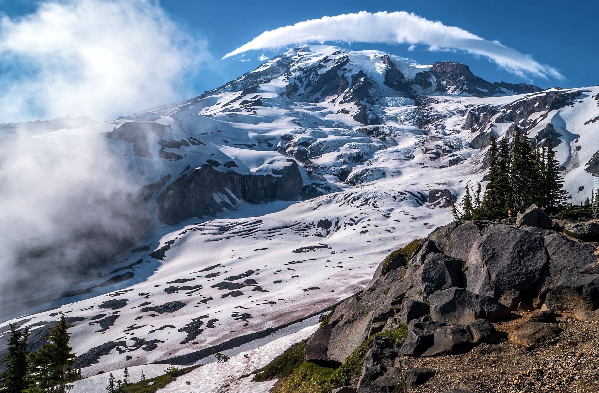Edytor tapety: Góry, Kamienie, Śnieg, Drzewa