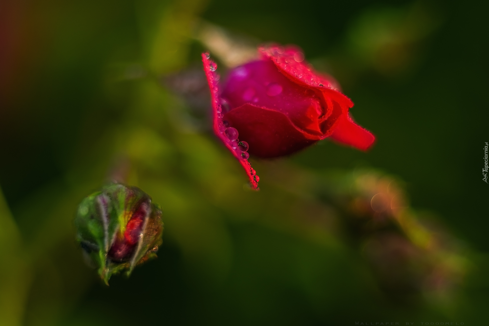 Edytor tapety: Krople, Woda, Kwiat, Róża, Czerwona, Pąk