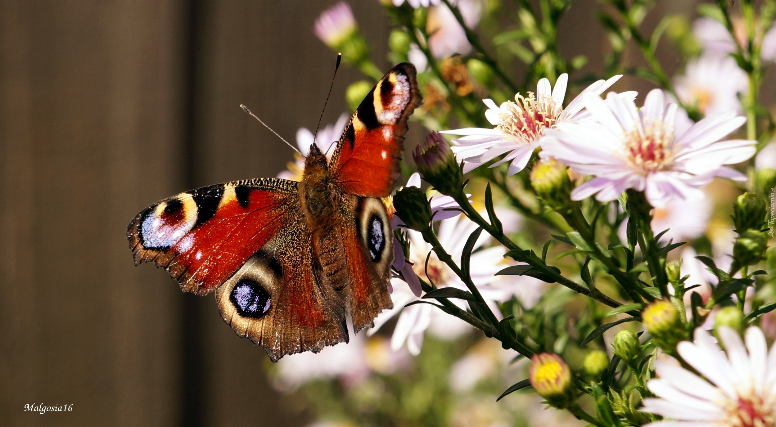 Edytor tapety: Kwiaty, Astry, Kolorowy, Motyl, Rusałka pawik