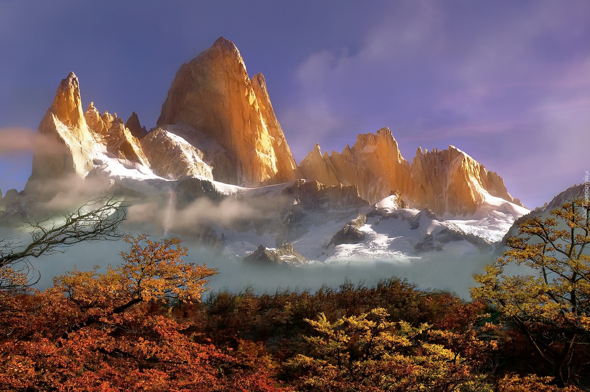 Edytor tapety: Góry, Mgła, Drzewa