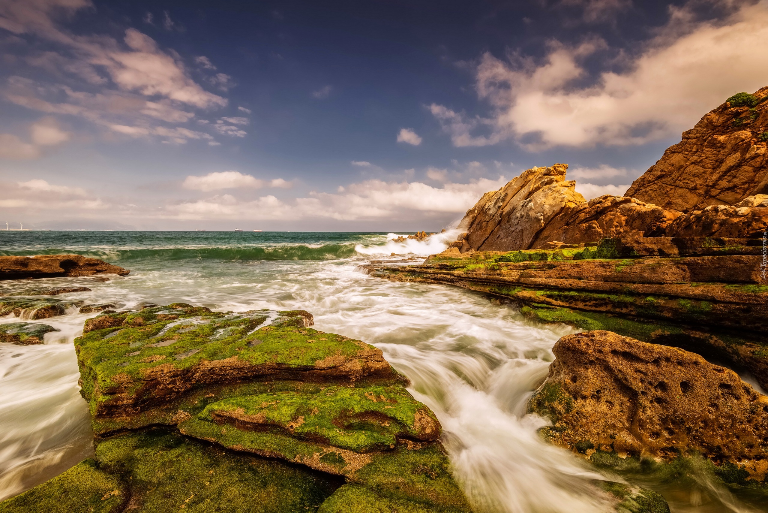 Edytor tapety: Morze, Fale, Omszałe, Skały