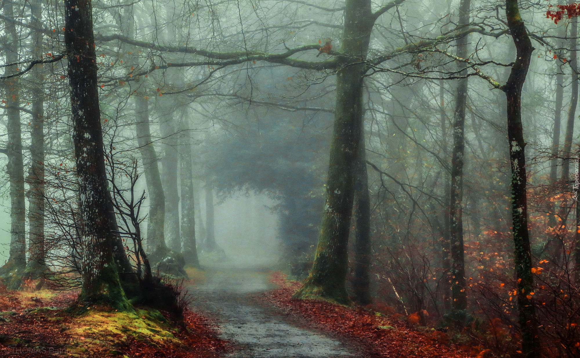 Edytor tapety: Jesień, Las, Mgła, Droga, Drzewa