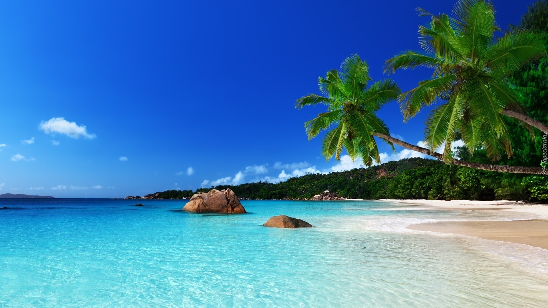 Edytor tapety: Morze, Plaża, Piasek, Palma, Niebo