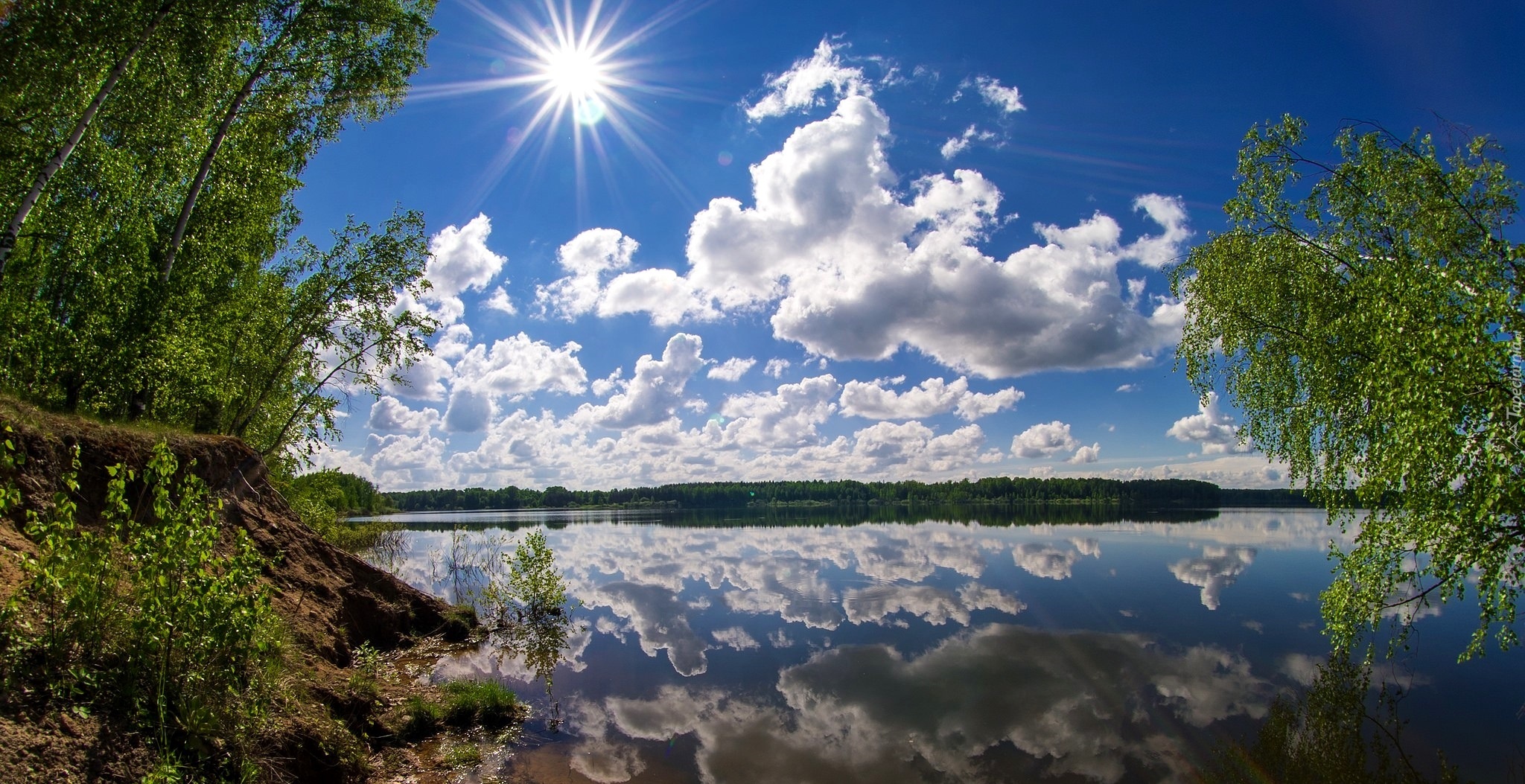 Edytor tapety: Jezioro, Drzewa, Chmury, Odbicie