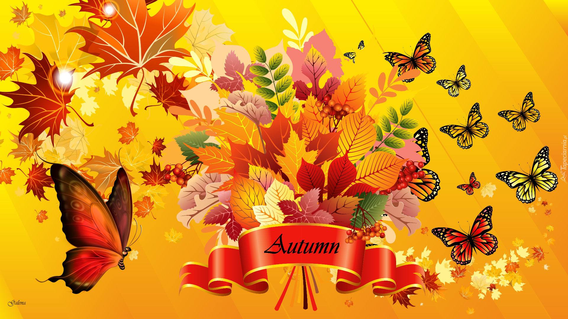 Edytor tapety: Jesień, Motyle, Liście, Grafika