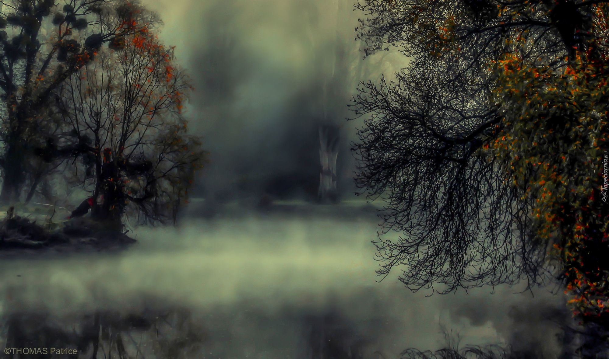 Edytor tapety: Jezioro, Mgła, Drzewa