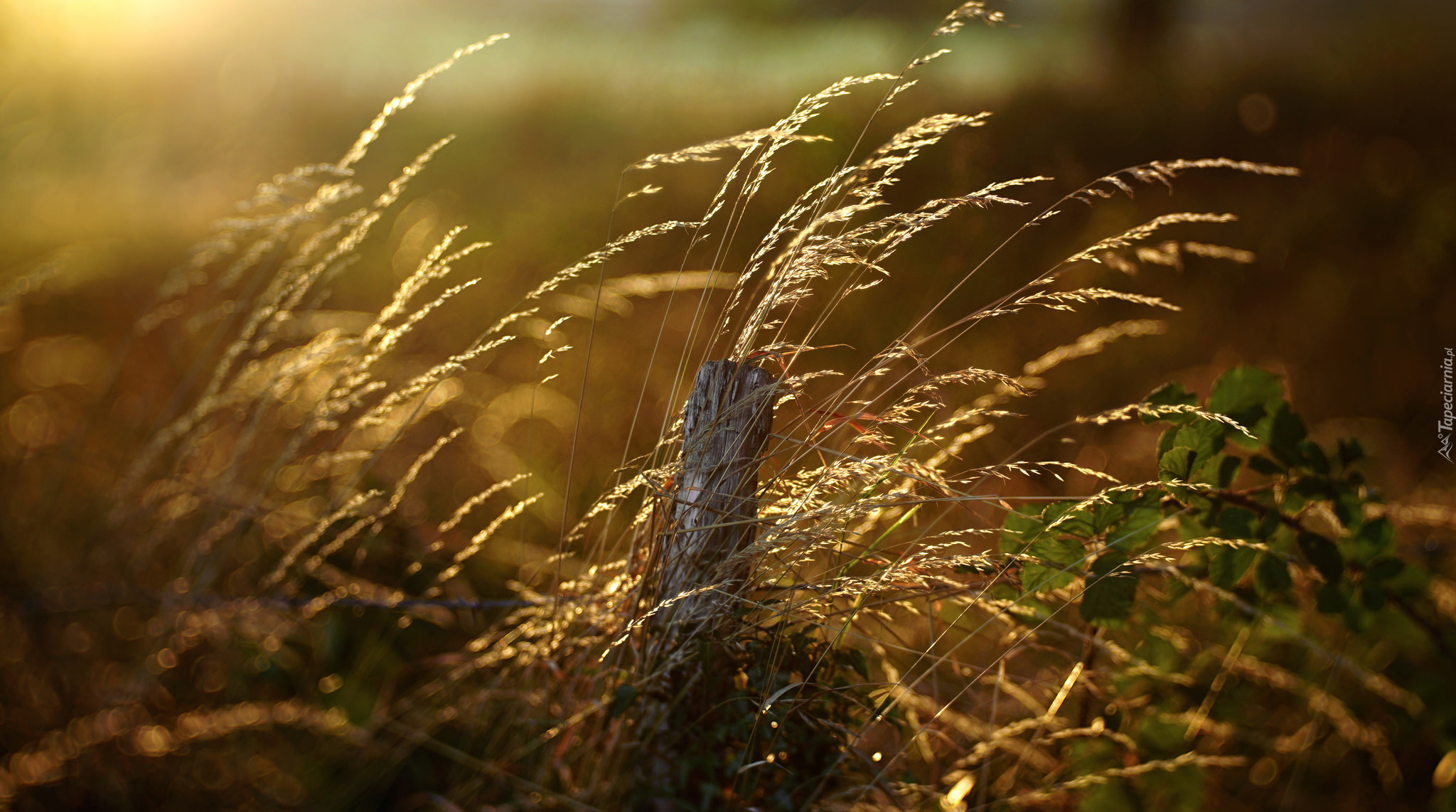 Edytor tapety: Słupek, Trawa, Promienie, Słoneczne