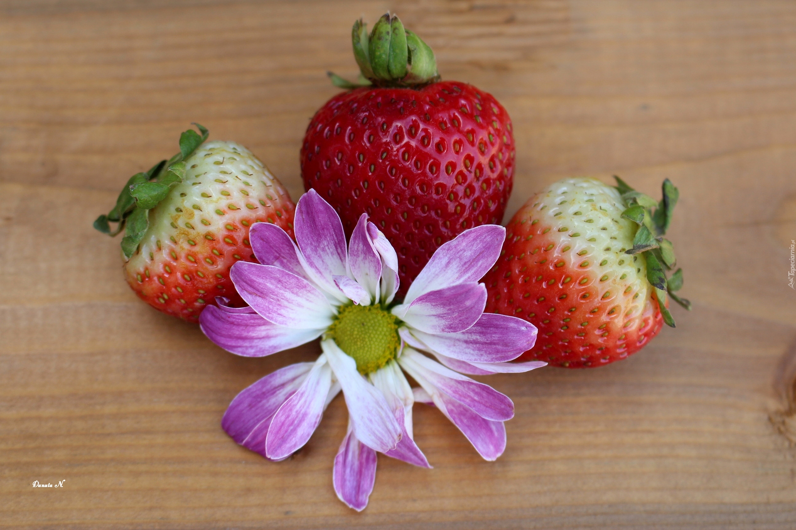 Edytor tapety: Owoce, Truskawki, Kwiatek