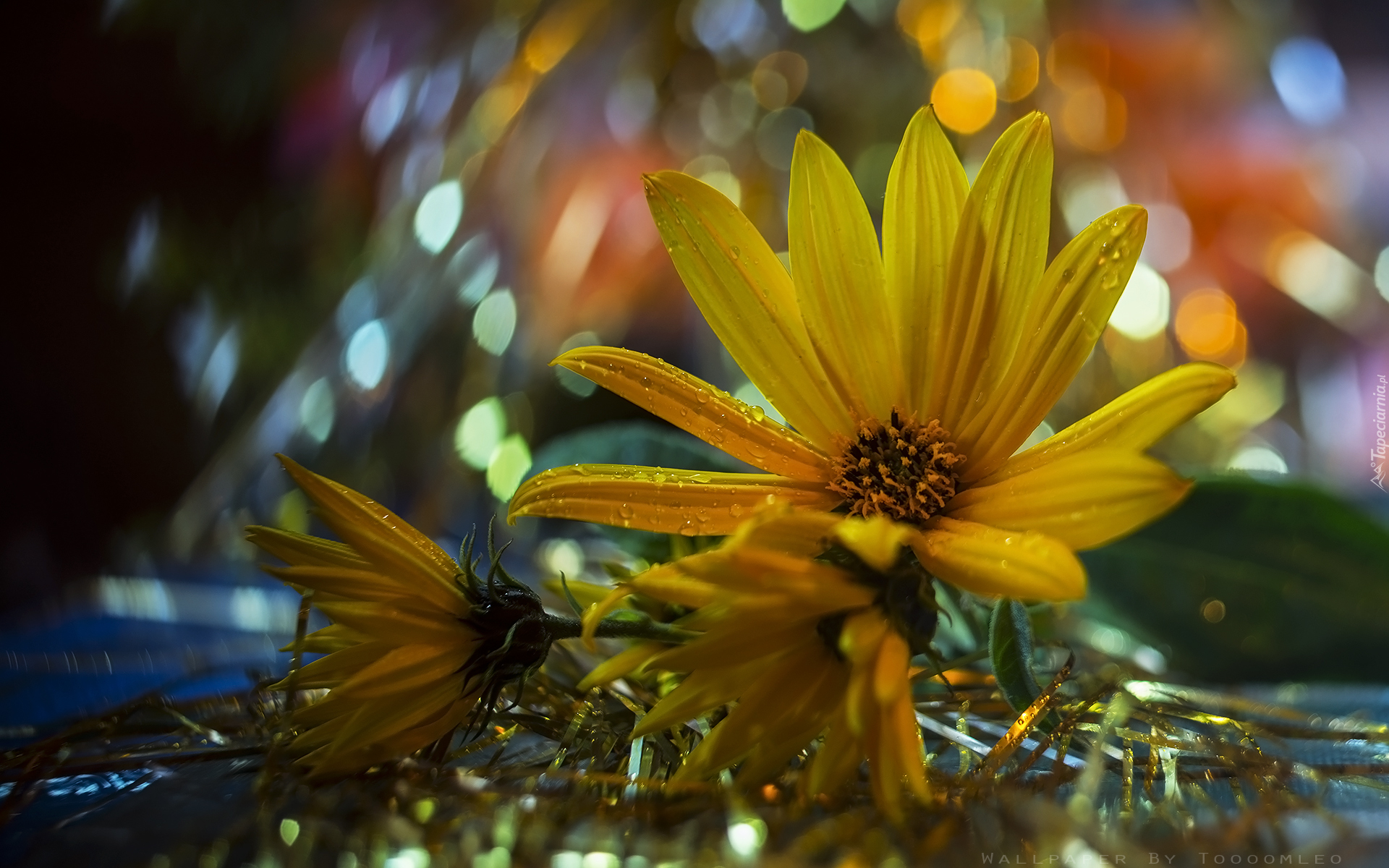 Edytor tapety: Kwiat, Żółty, Polny, Słoneczniczek, Bliki, Bokeh, Makro