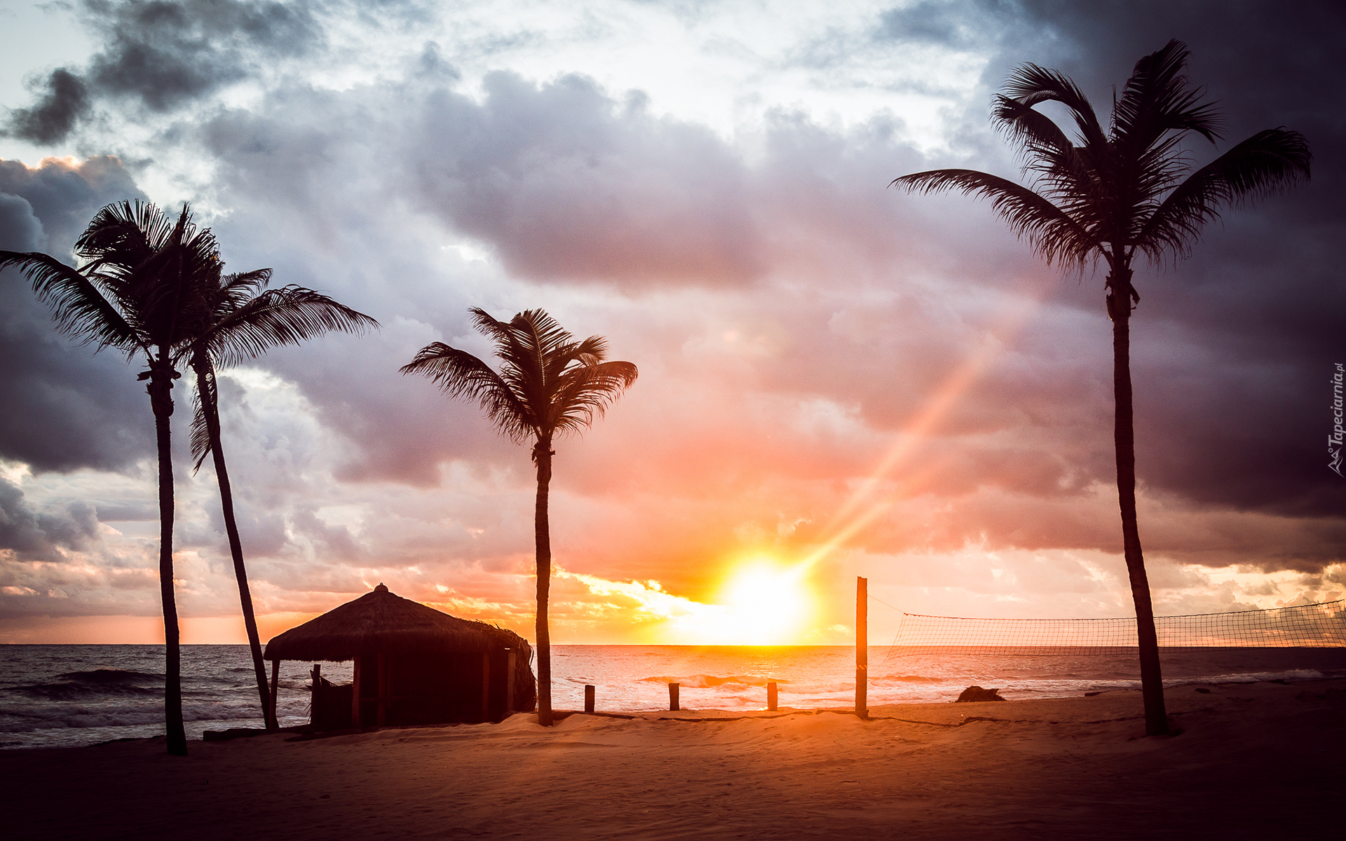 Edytor tapety: Morze, Palmy, Zachód słońca, Chmury