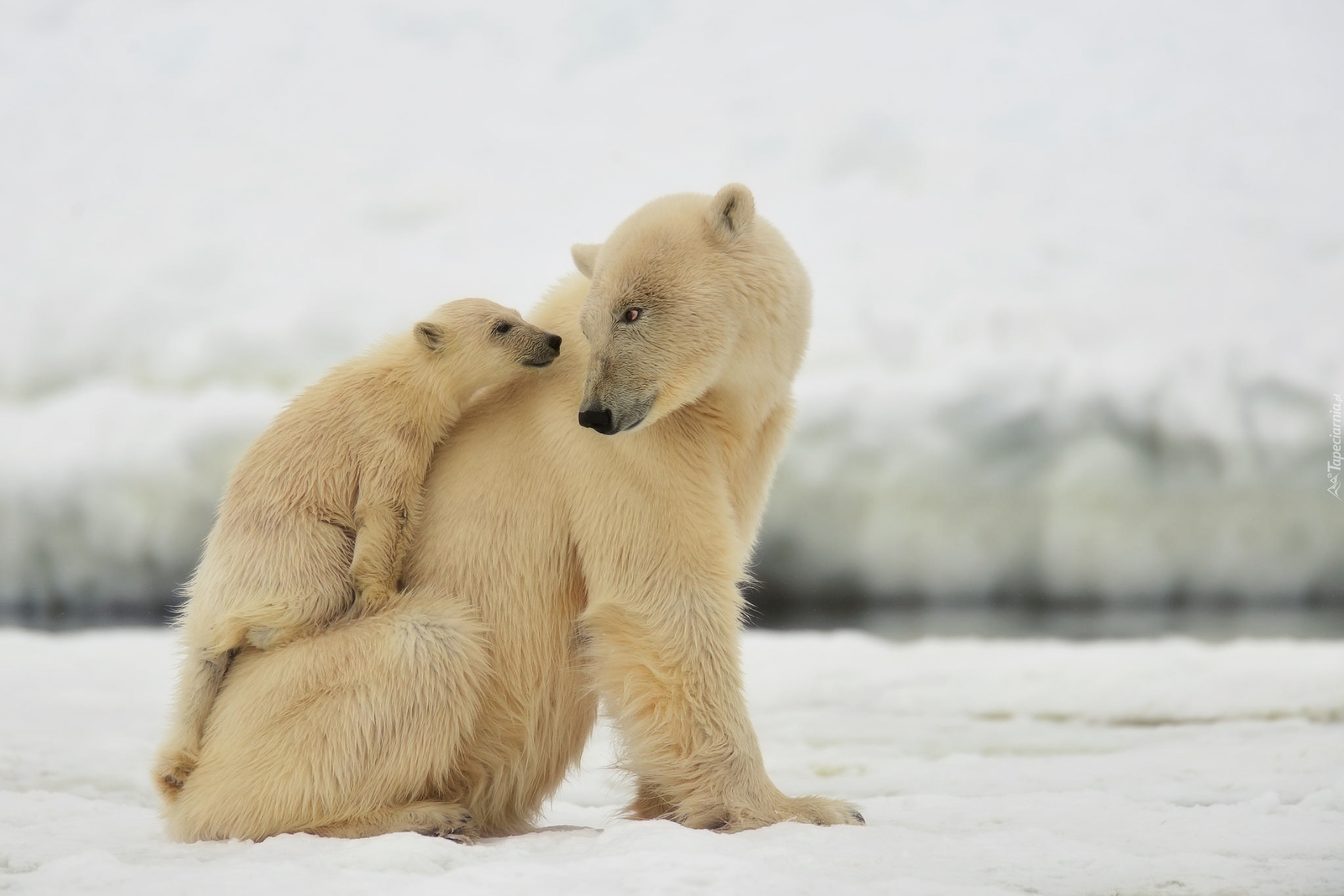 Edytor tapety: Niedźwiedzica, Młode, Spojrzenie, Rozmyte, Tło