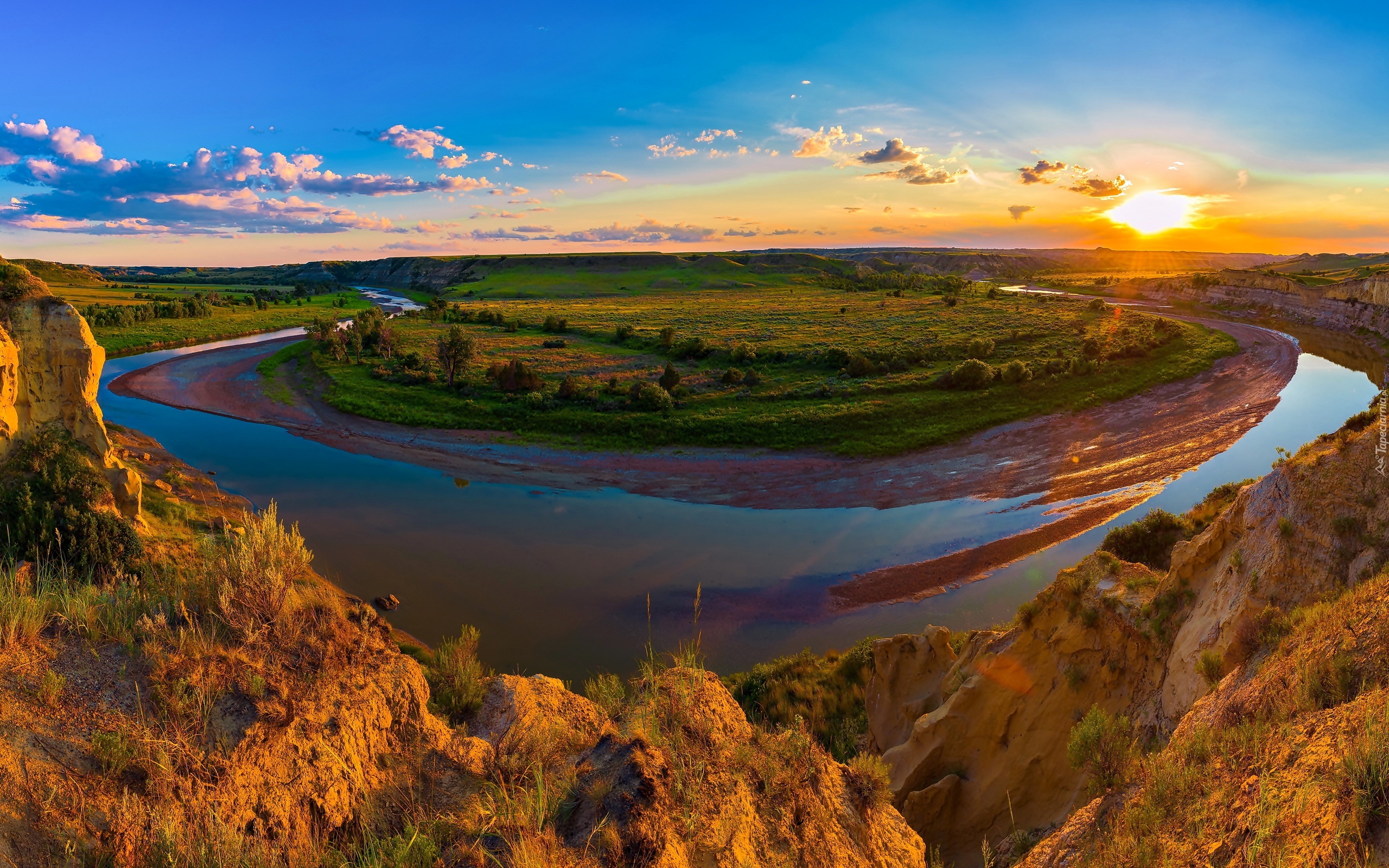 Edytor tapety: Jesień, Las, Rzeka, Łąka, Zachód, Słońca