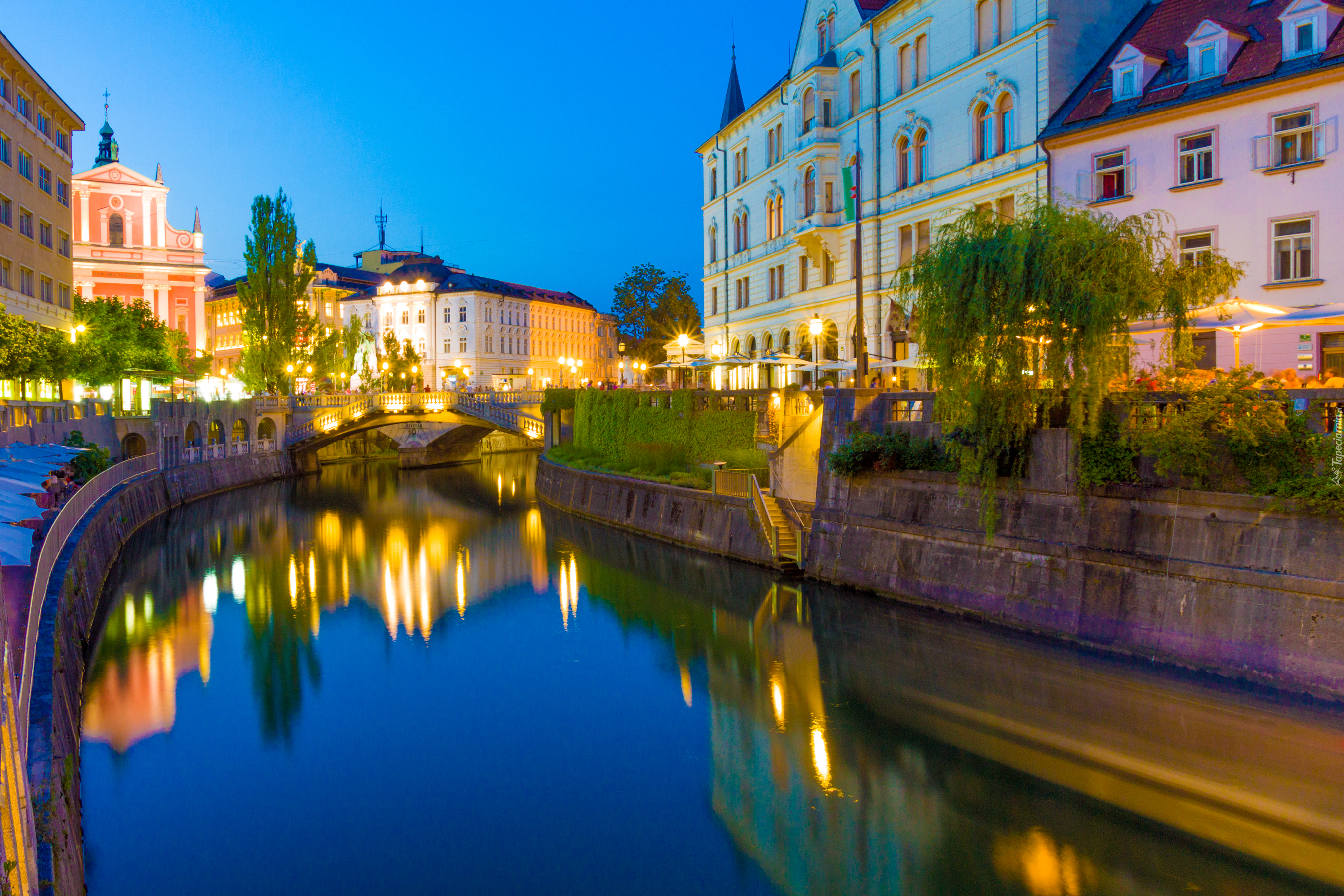 Edytor tapety: Słowenia, Lublana, Europa, Rzeka, Domy