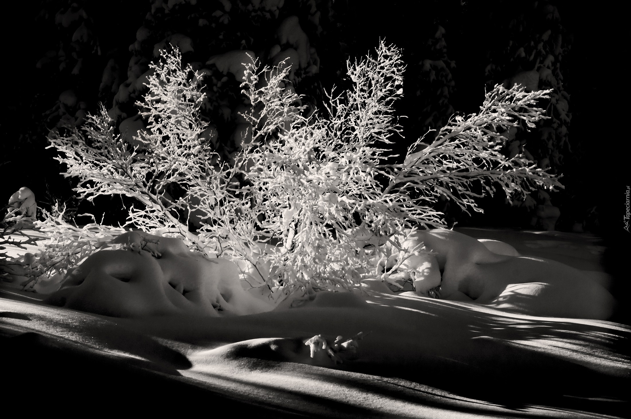 Edytor tapety: Zima, Las, Krzew, Przebijające światło