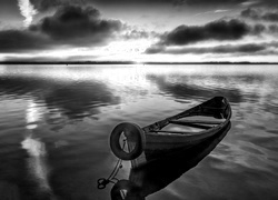 Edytor tapety: Łódka, Morze, Zachód, Słońca, Niebo, Chmury