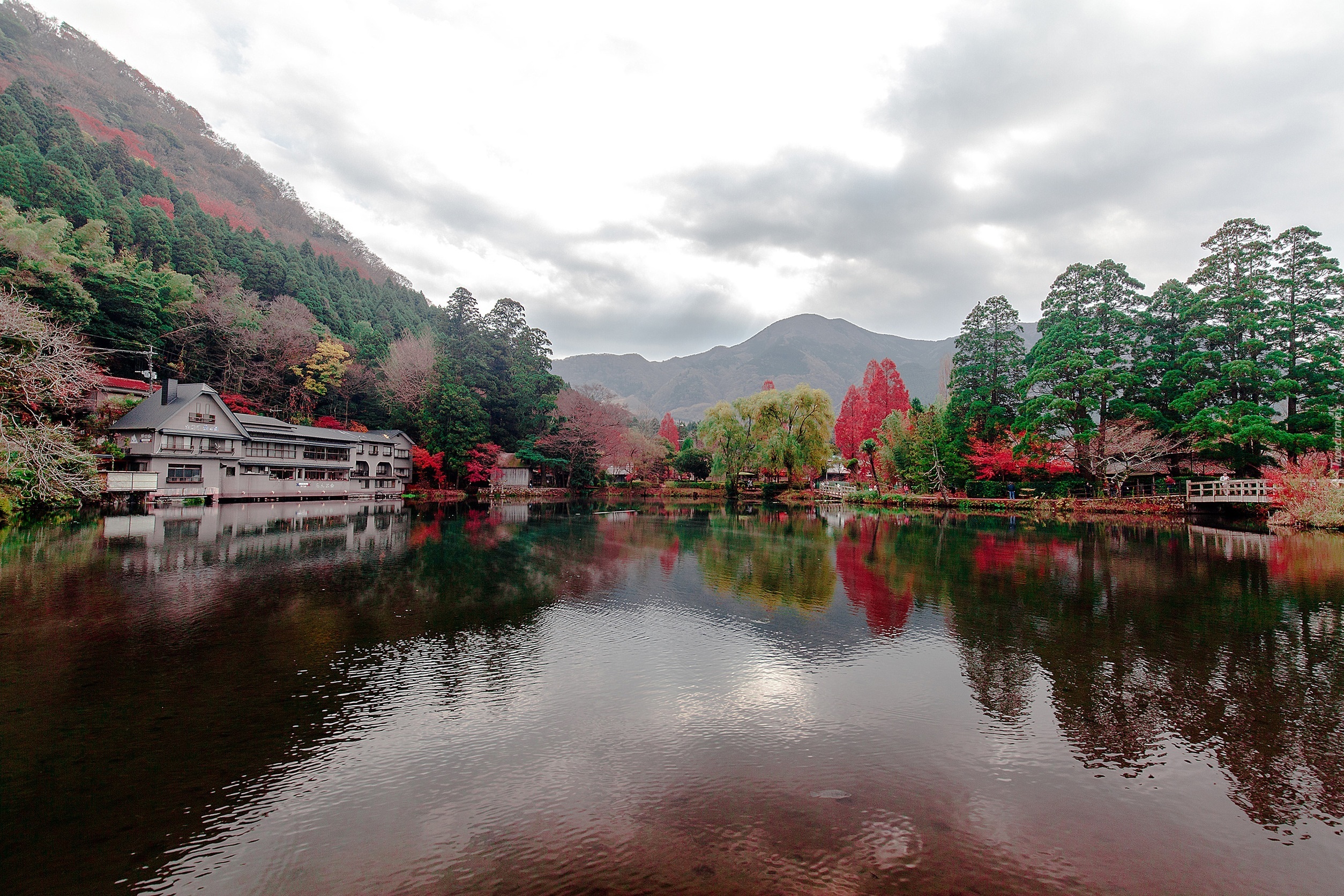 Edytor tapety: Jezioro, Góry, Lasy, Drzewa, Domy
