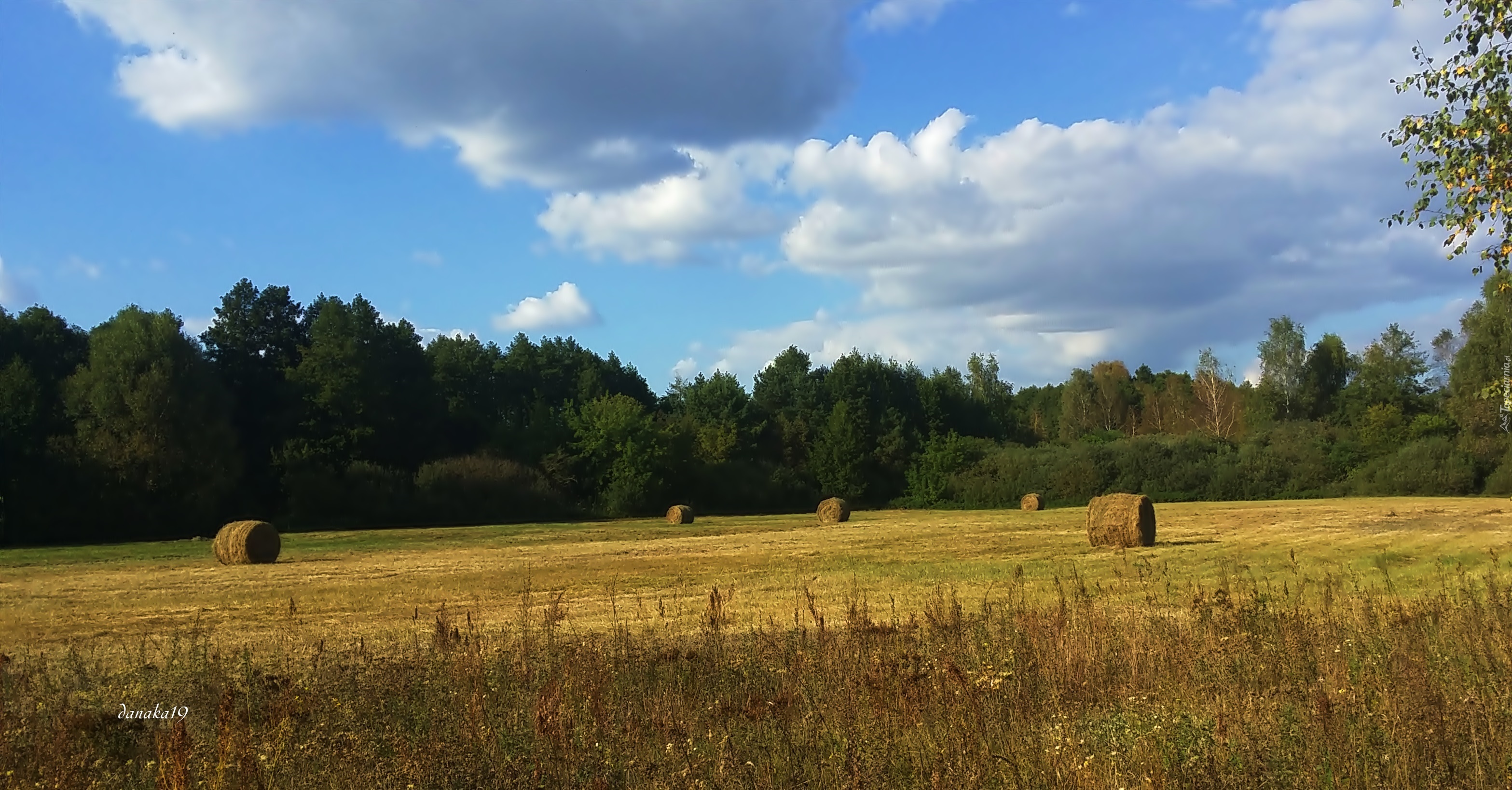 Edytor tapety: Łąka, Siano, Trawa, Niebo, Chmury