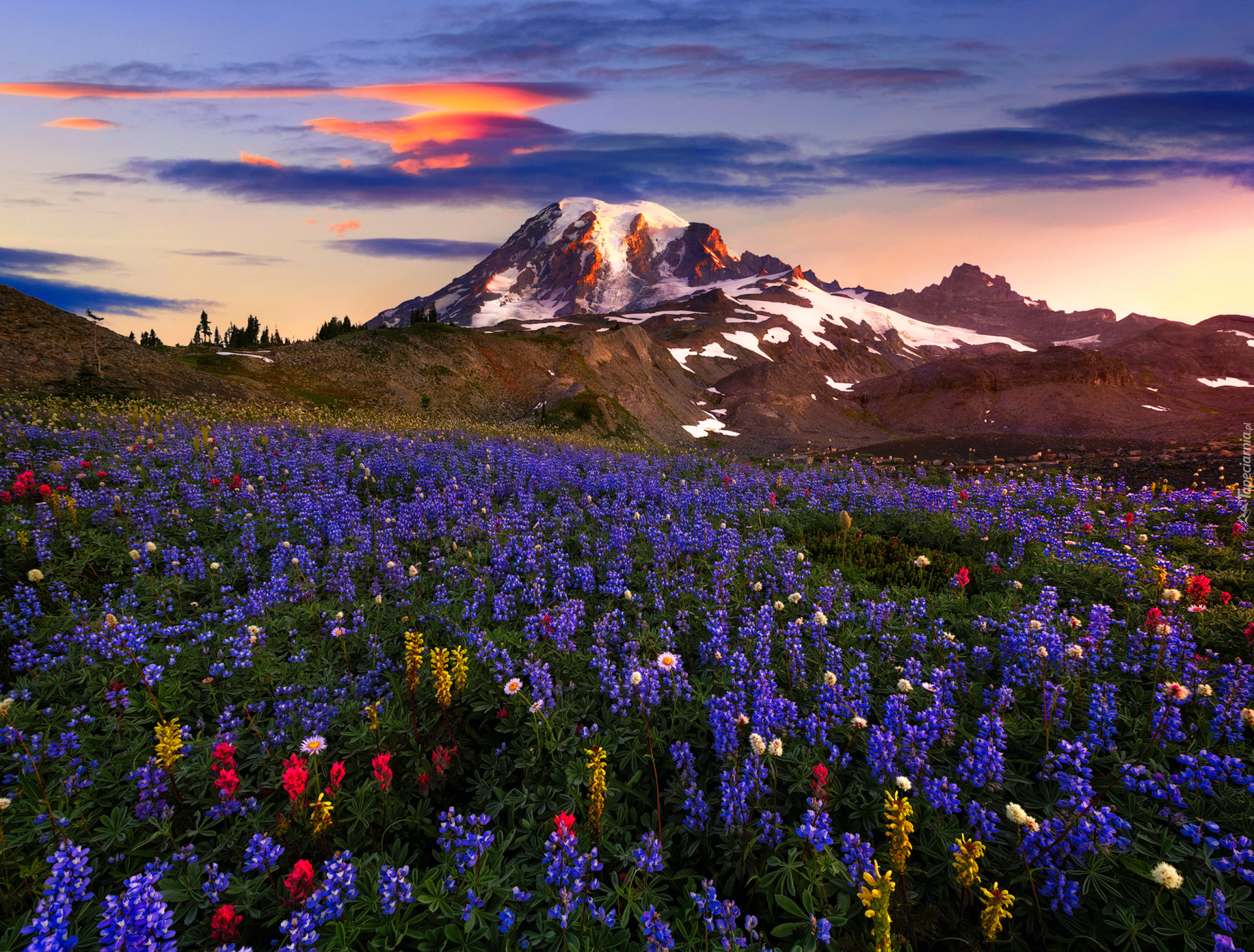 Edytor tapety: Góry, Niebo, Łąka, Kwiaty
