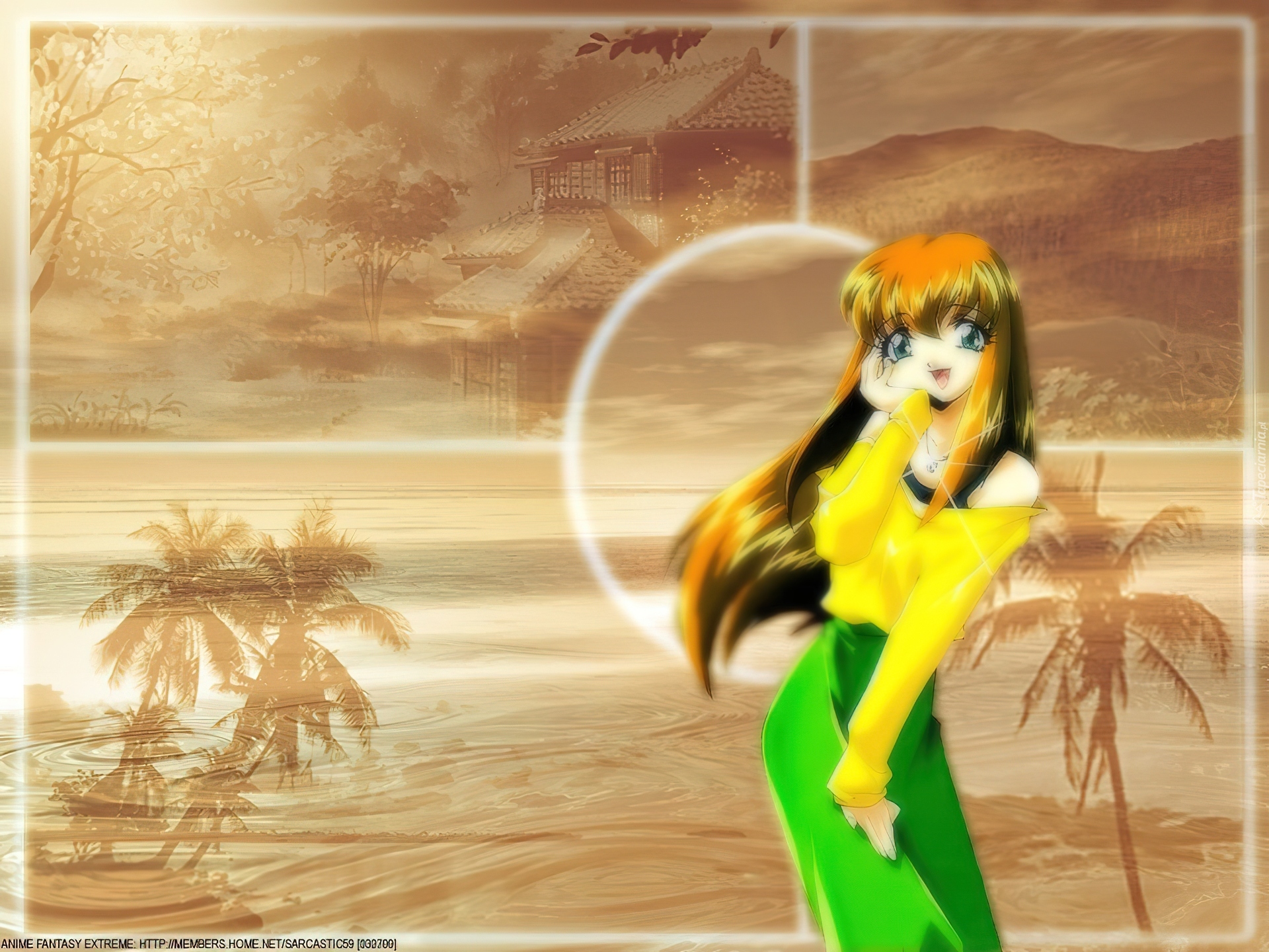 Edytor tapety: Saber Marionette J, kobieta, palmy, dom, woda