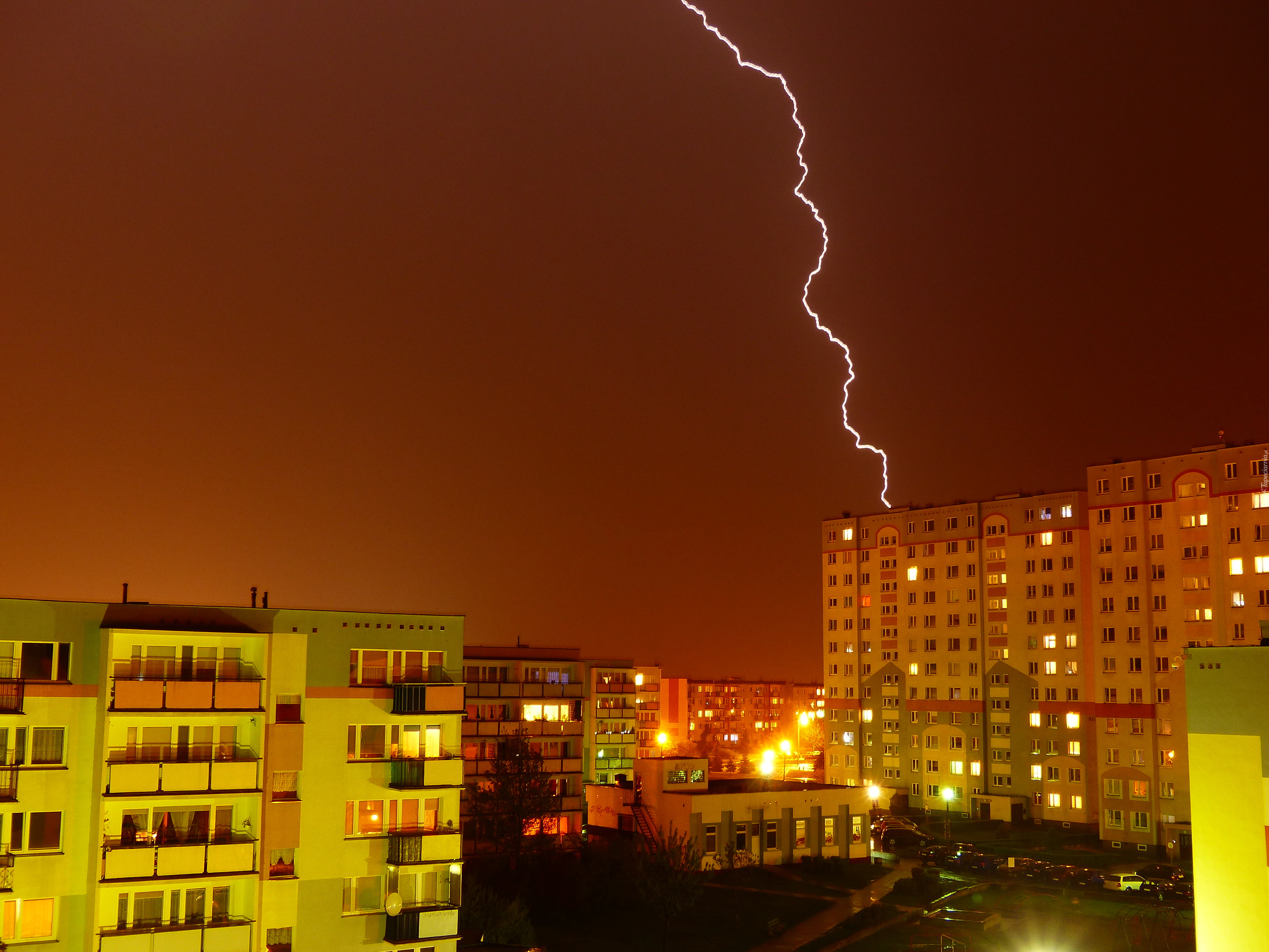 Edytor tapety: Burza, Osiedle, Noc, Piorun