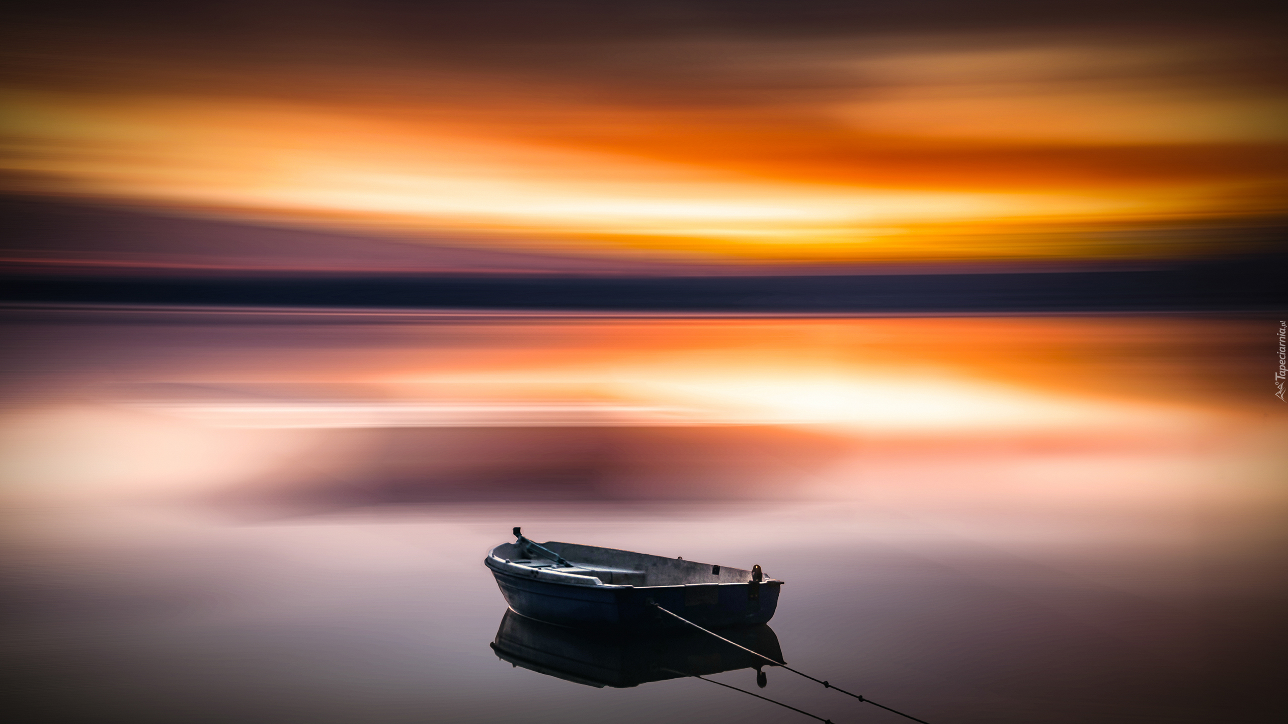 Edytor tapety: Jezioro, Zachód słońca, Łódka
