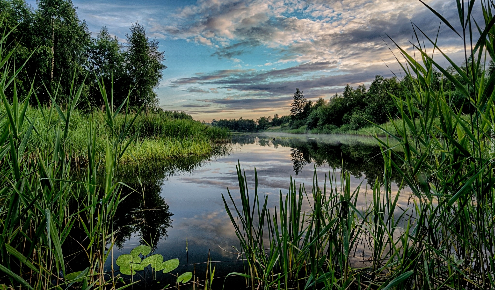 Edytor tapety: Rzeka, Drzewa, Niebo, Roślinność