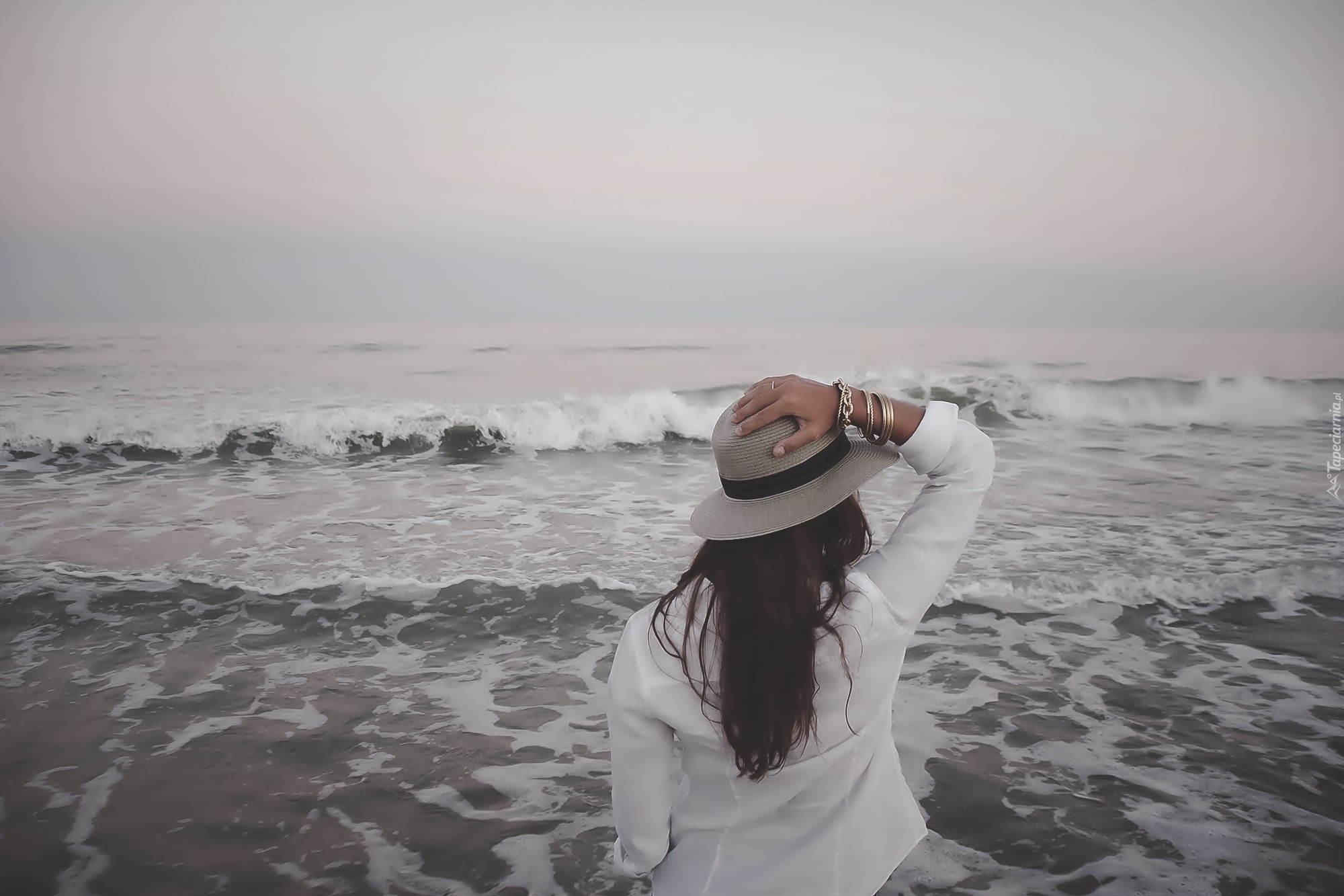 Edytor tapety: Dziewczyna, Kapelusz, Morze, Fale