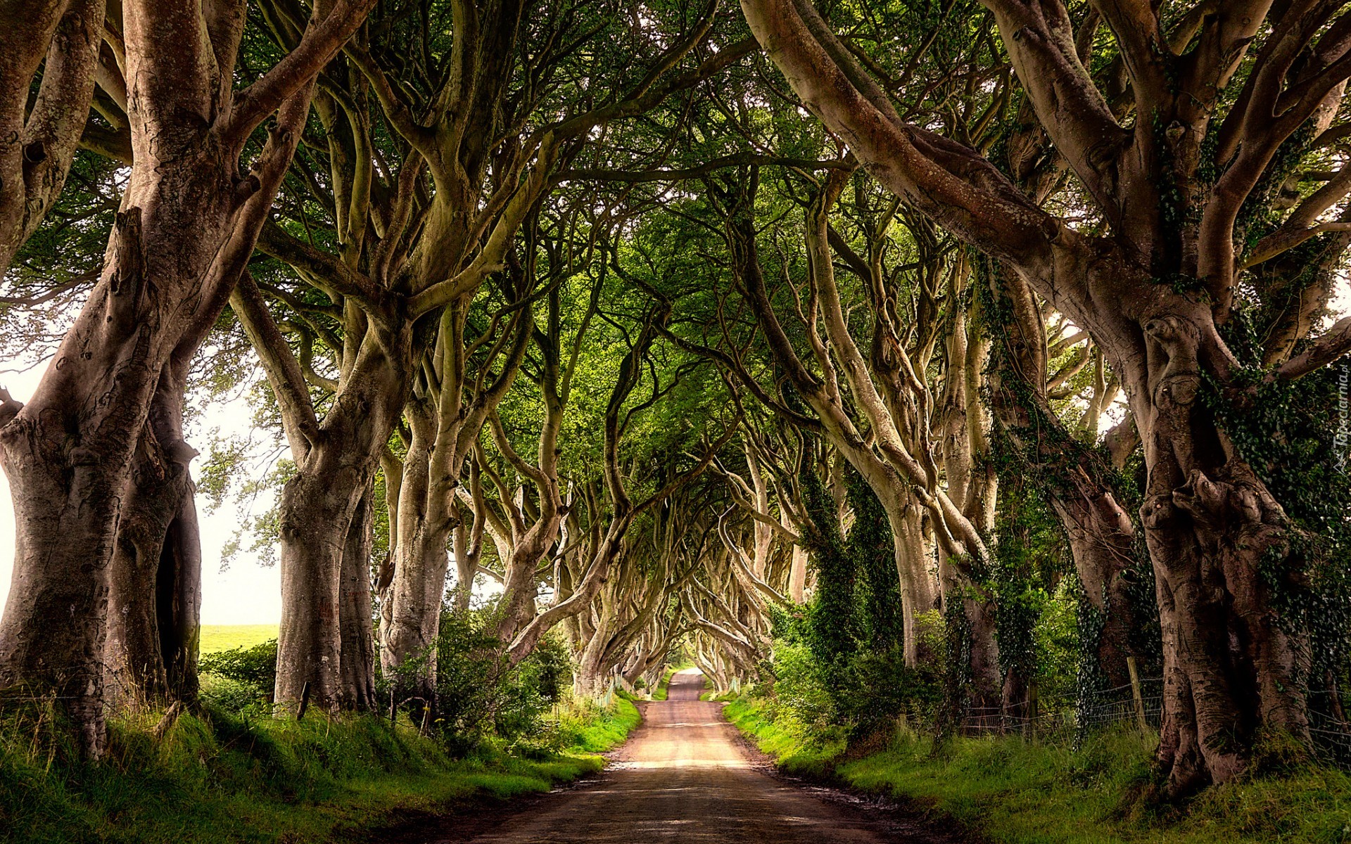 Edytor tapety: Irlandia Północna, Hrabstwo Antrim, Bukowa aleja Dark Hedges, Droga, Drzewa, Buki
