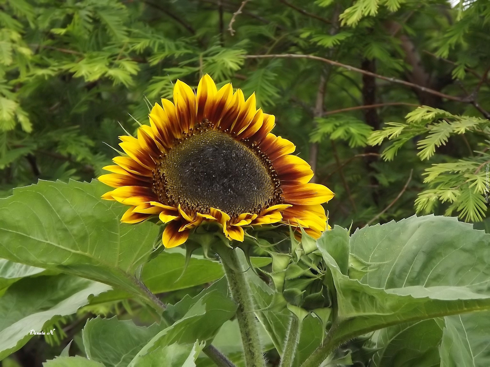 Edytor tapety: Słonecznik, Jeden, Liście, Ogród, Lato