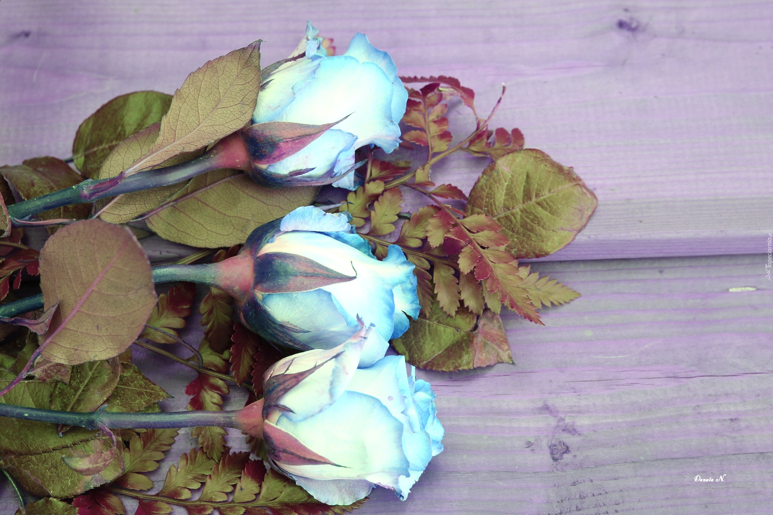 Edytor tapety: Kwiaty, Róże, Niebieskie, Bukiet, Liście