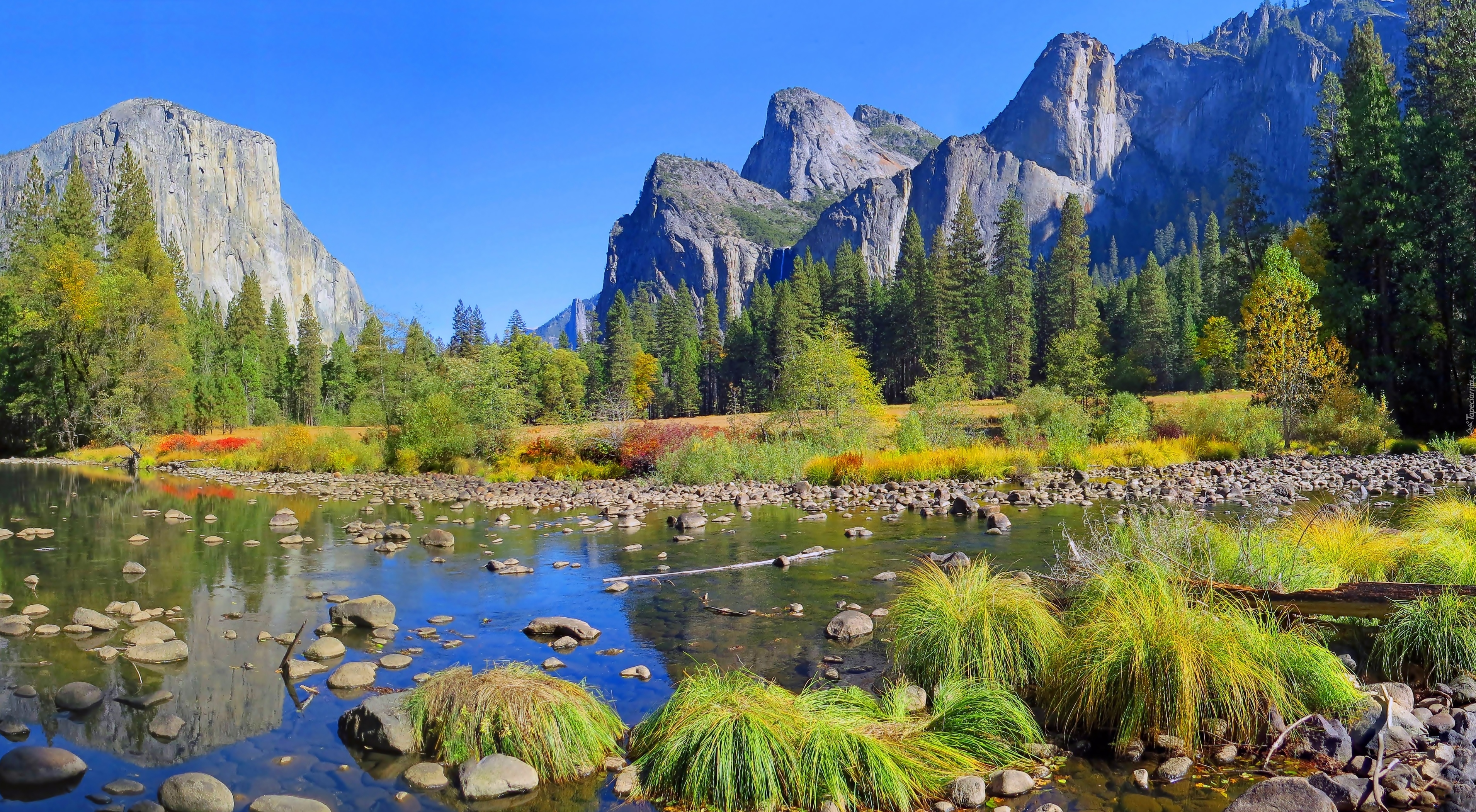 Edytor tapety: Góry, Rzeka, Las, Kamienie, Yosemite, Roślinność