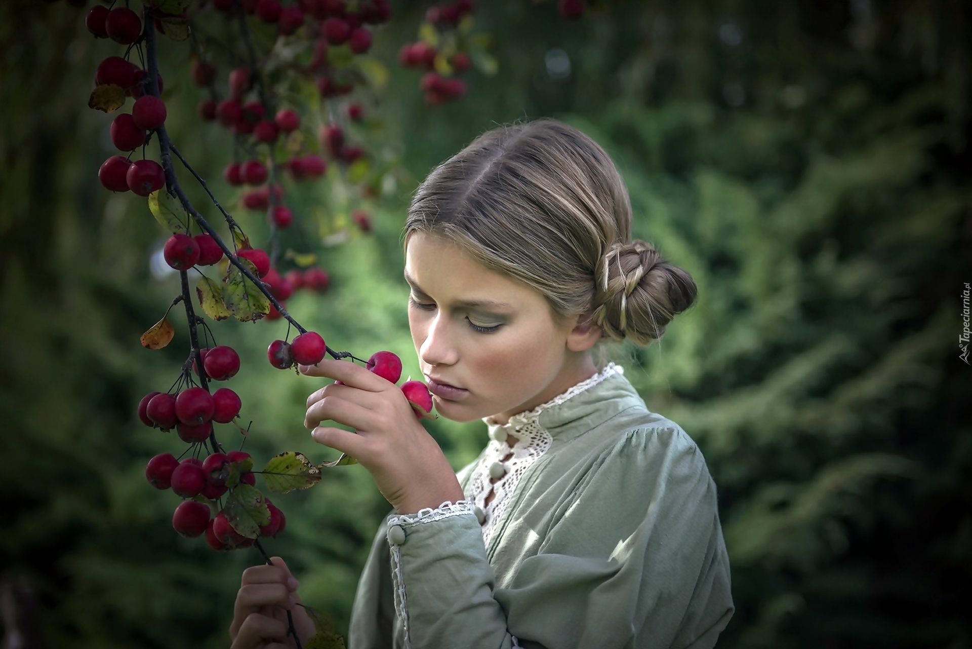 Edytor tapety: Smutna, Dziewczyna, Las, Drzewo, Rajskie, Jabłuszka