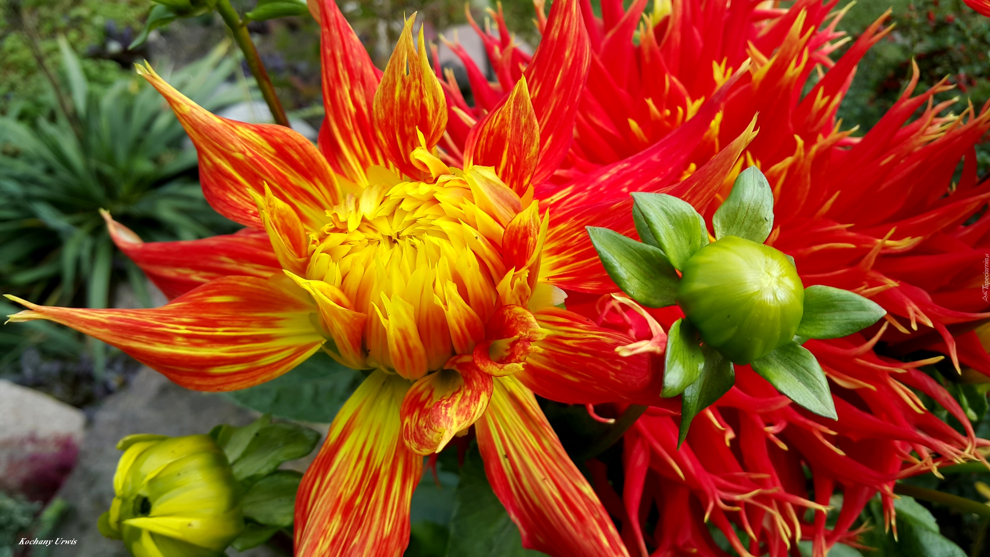 Edytor tapety: Czerwono, Żółta, Dalia, Pąki