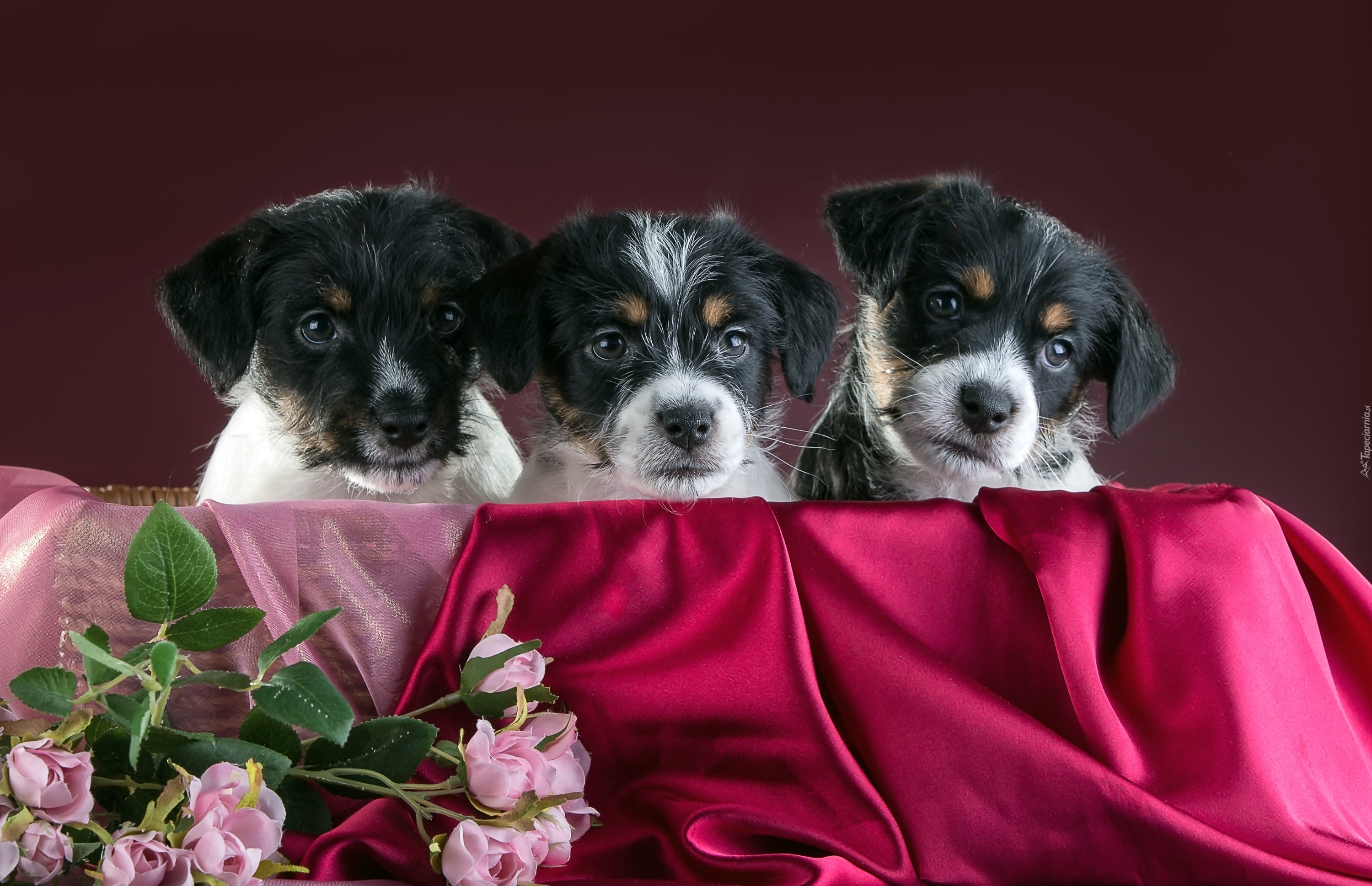 Edytor tapety: Trzy, Szczeniaki, Kwiatki