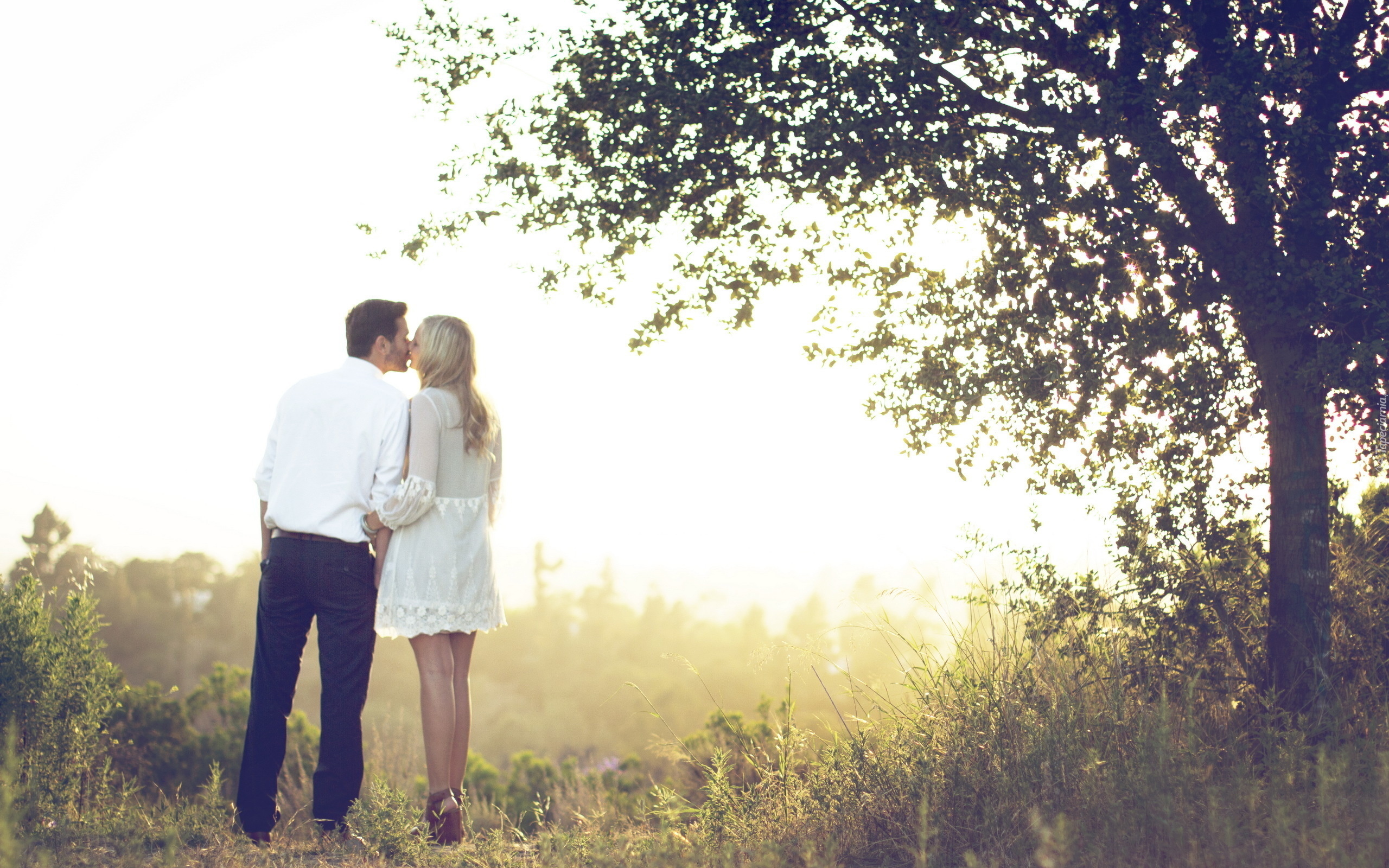 Edytor tapety: Kobieta, Mężczyzna, Łąka, Drzewo