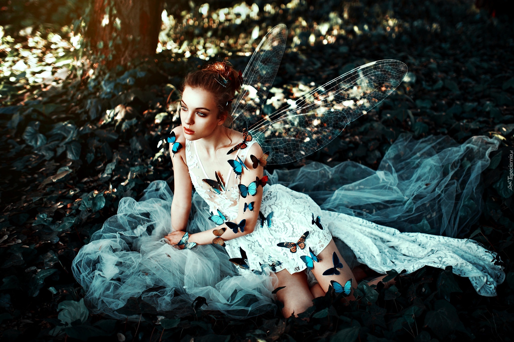 Edytor tapety: Fantasy, Elf, Kobieta, Motyle