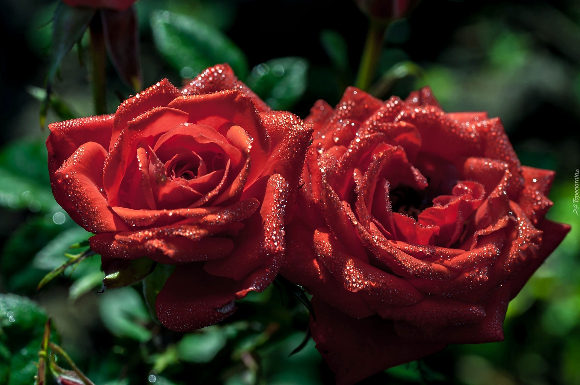 Edytor tapety: Makro, Dwie, Czerwone, Róże, Krople