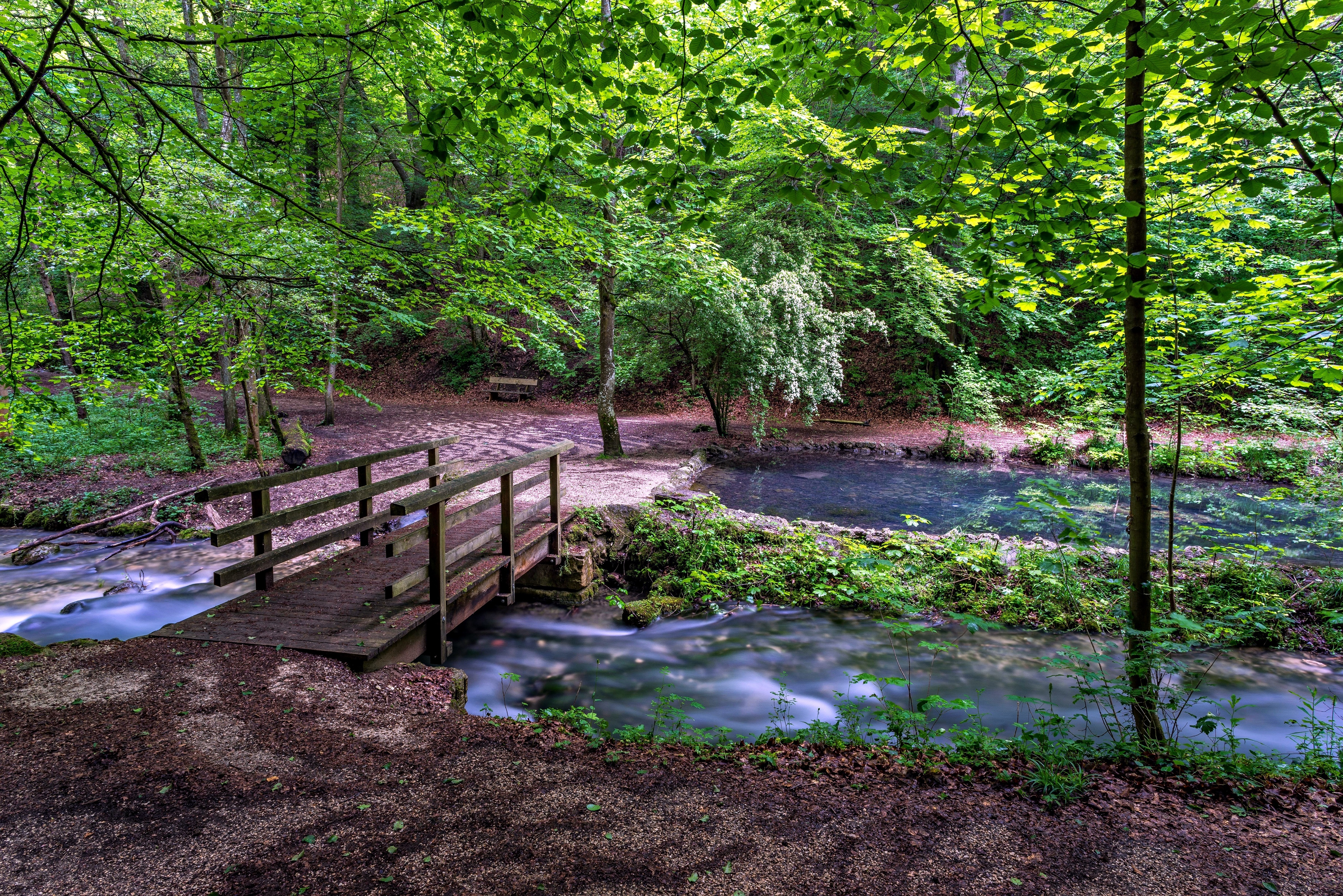 Edytor tapety: Mostek, Rzeczka, Las, Ławka