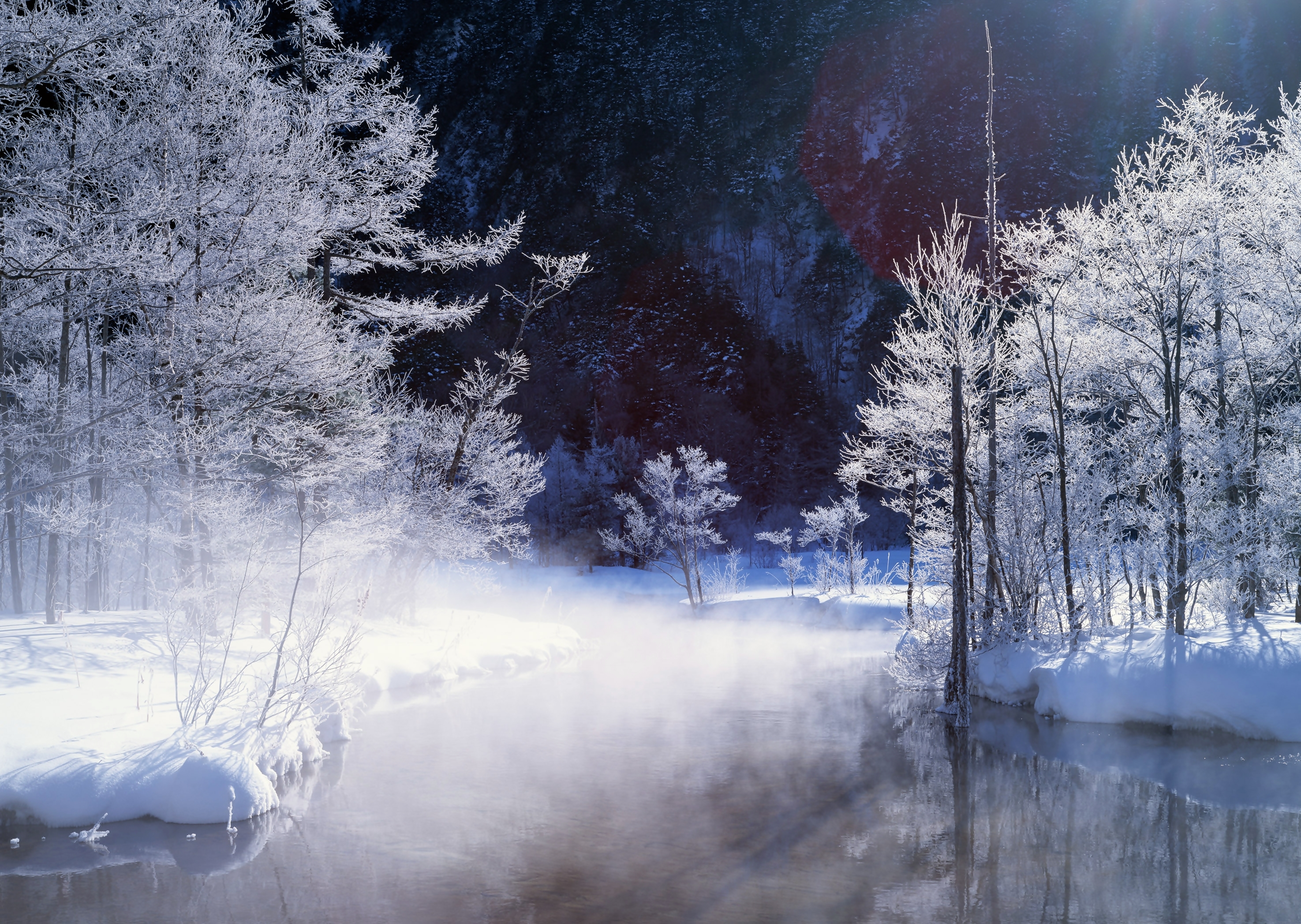 Edytor tapety: Zima, Las, Rzeka, Mgła