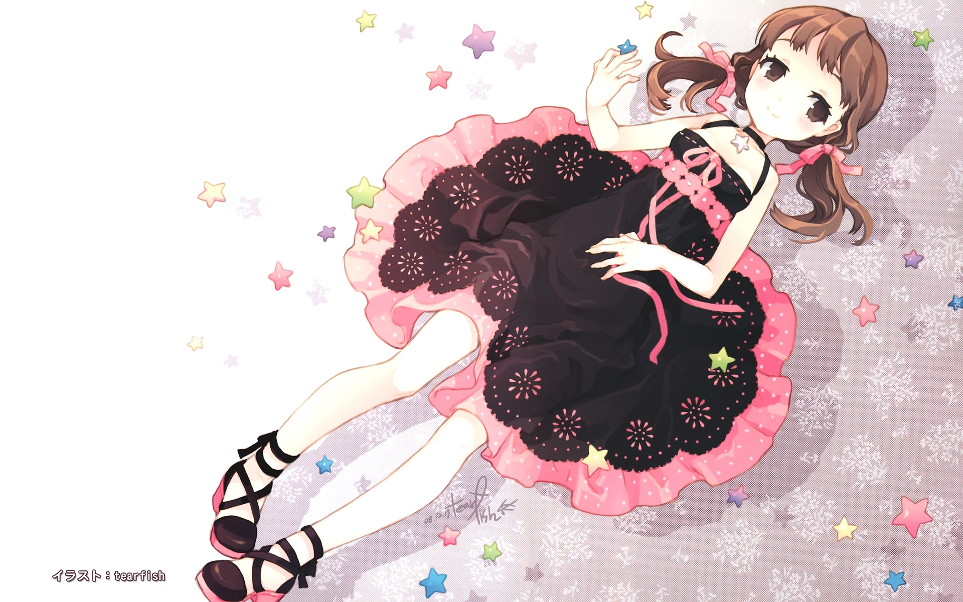 Edytor tapety: Dziewczyna, Napisy, Gwiazdy, Kwiaty, Manga, Anime