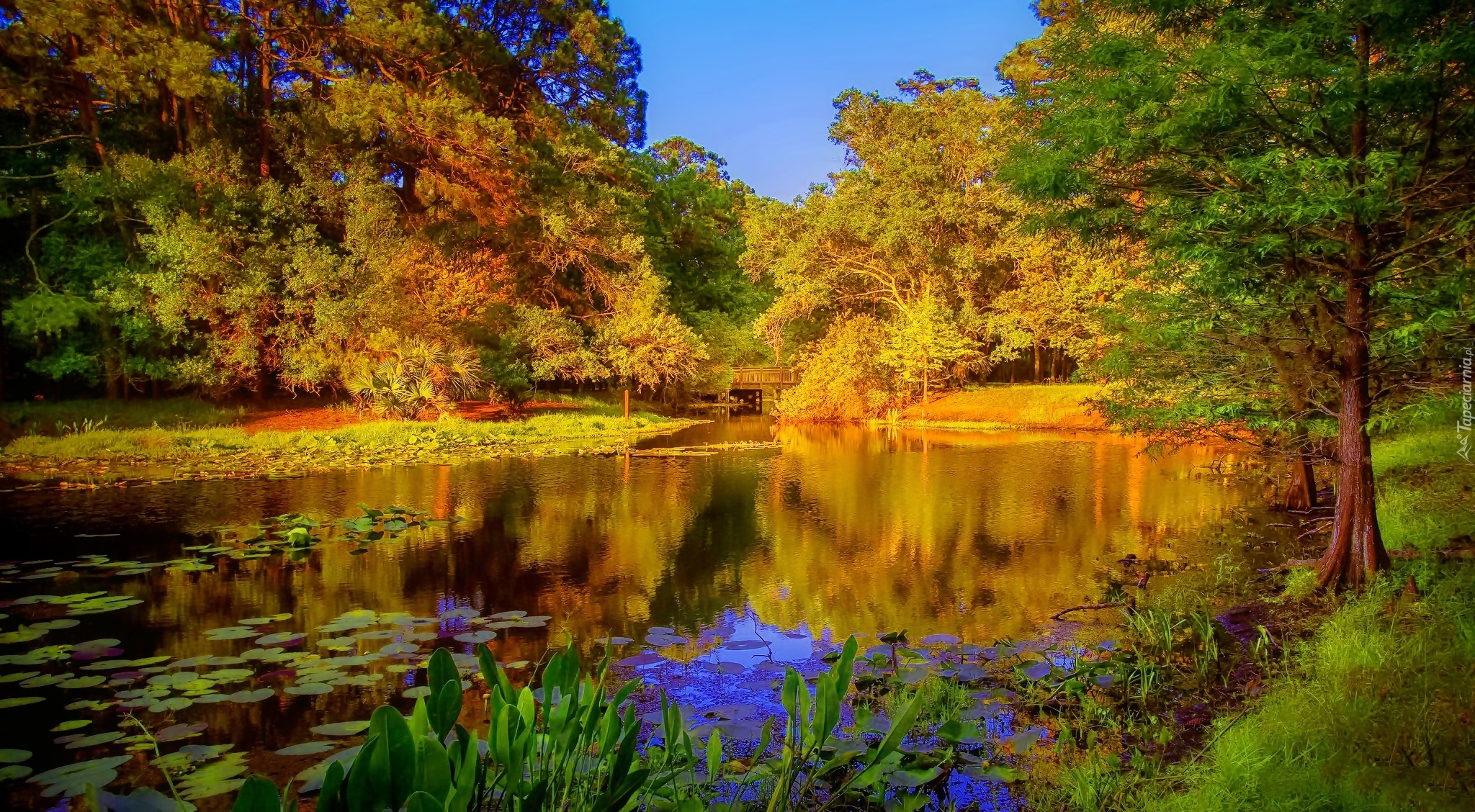 Edytor tapety: Park, Staw, Most, Jesień