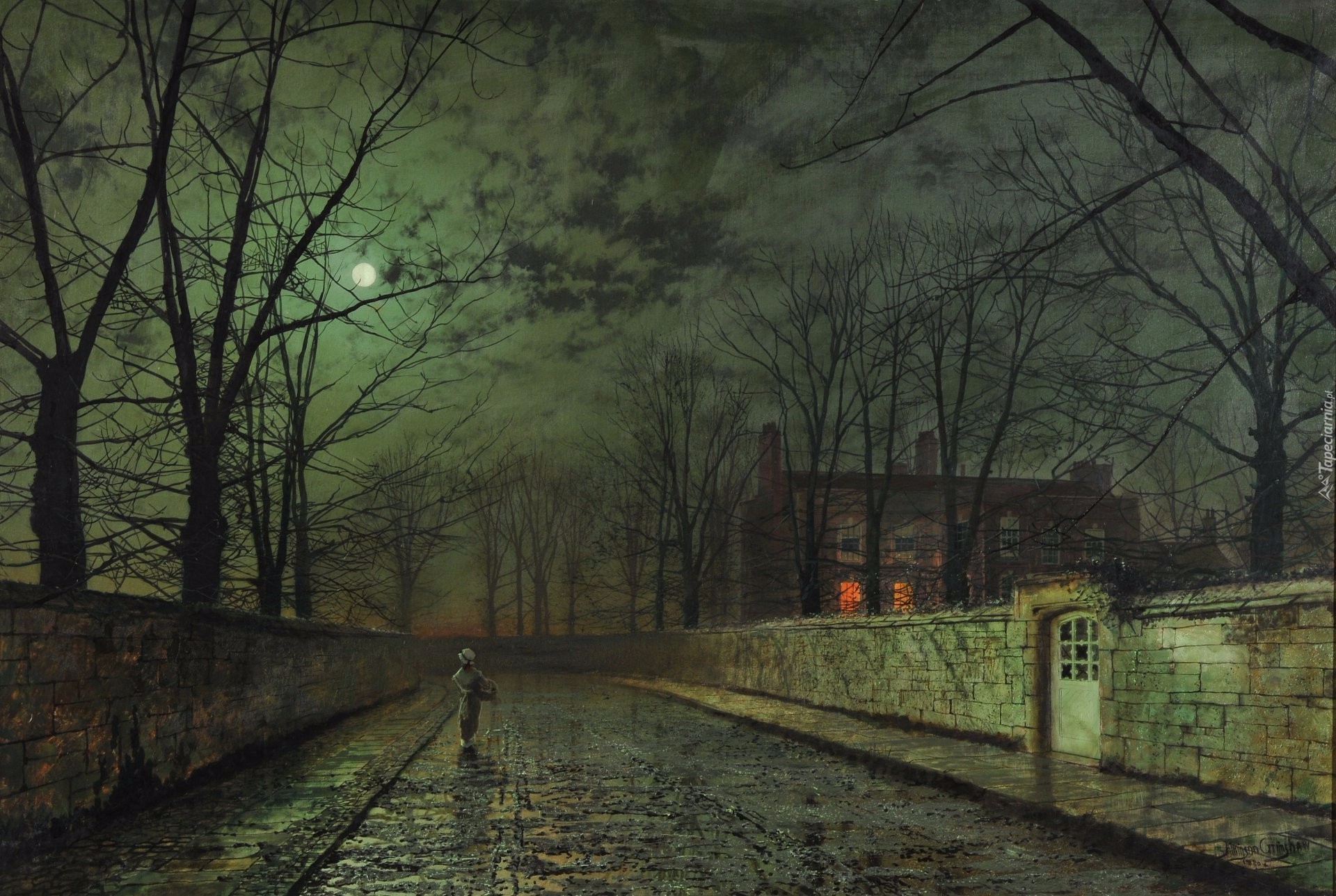 Edytor tapety: Noc, Ulica, Księżyc, Chłopiec