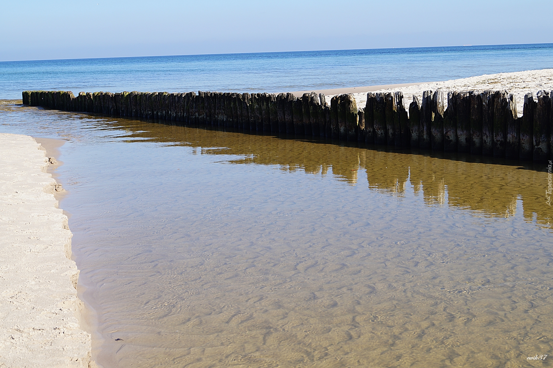 Edytor tapety: Morze, Pale, Drewniane, Plaża